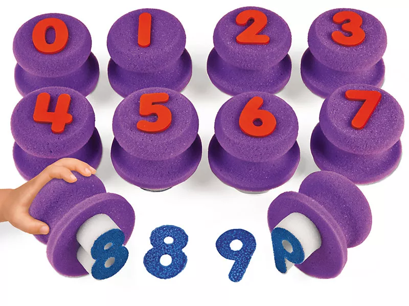 Ці штампи допоможуть вивчити цифри легко і весело. На підставі кожного штампа губка, яка просочується фарбою і добре друкується на папері або іншому полотні. Штамп зручно лежить в дитячій руці.