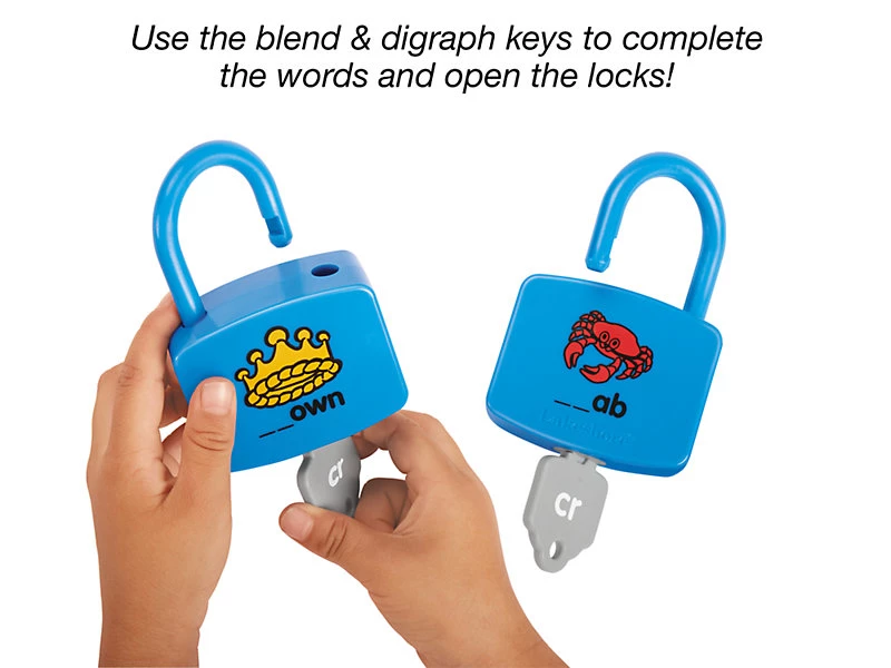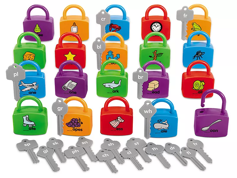 З цим кольоровим набором замків можна весело вчити нові слова! Діти просто підбирають ключик з початком слова до потрібного замочку з закінченням слова... якщо підібрали правильно, ключ відкриває замок!