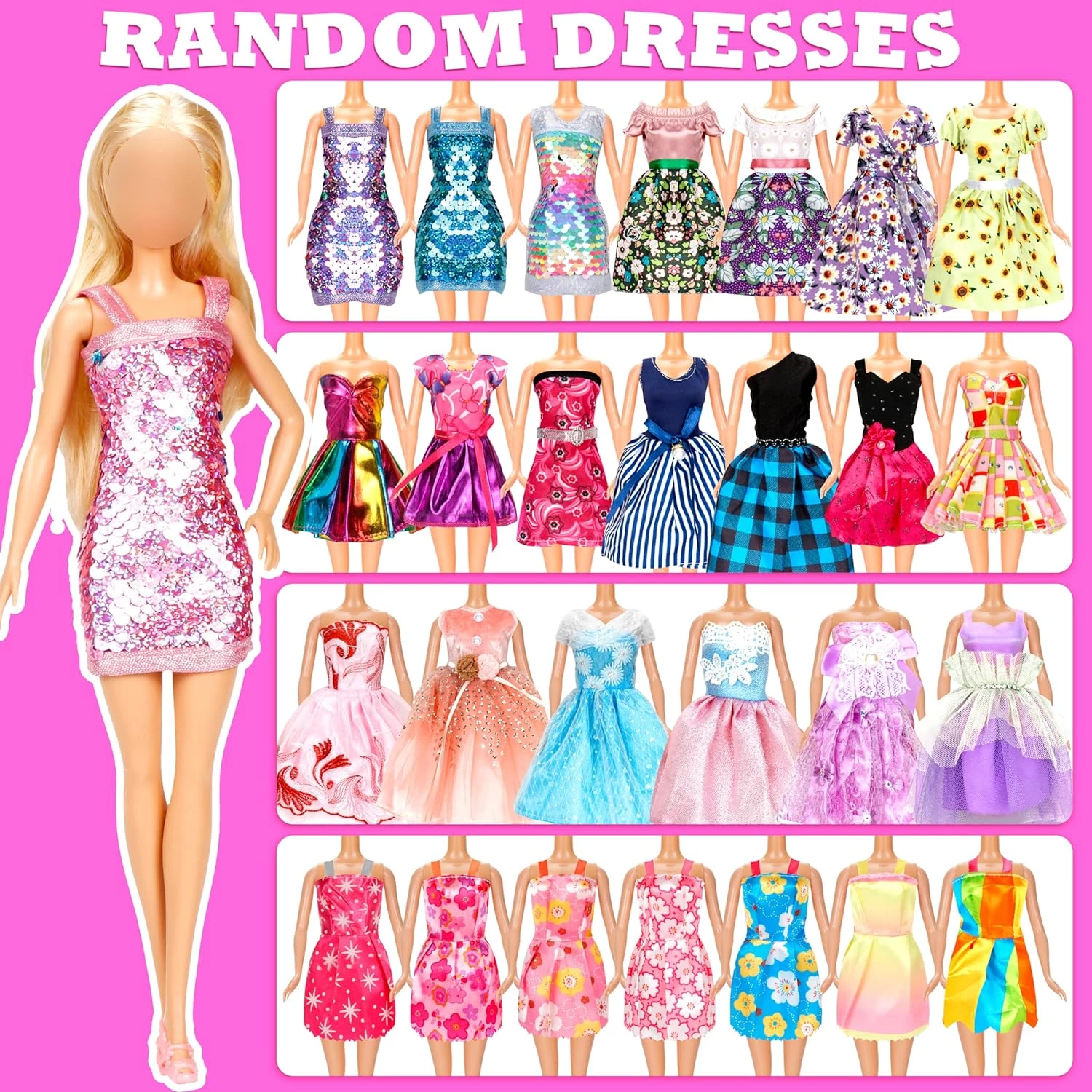 Цей ляльковий одяг виготовлений з високоякісного матеріалу, включаючи атлас, мереживо, шовк та тюль. Вишукана майстерність виготовлення робить пропонований одяг якісним, довговічним та унікальним. Мереживо весільних суконь повністю вкрите, що особливо гарно виглядає на ляльці. Також цей одяг безпечний для дитячих ігор. Комплект включає широкий вибір одягу та аксесуарів, які розширюють можливості розповідання історій, надихають на творчість та захопливі ігри. Всі лялькові сукні легко одягати і знімати завдяки клейкій основі. Це дозволить вашій дитині з легкістю змінювати вбрання ляльки та краще виявляти її чарівність.