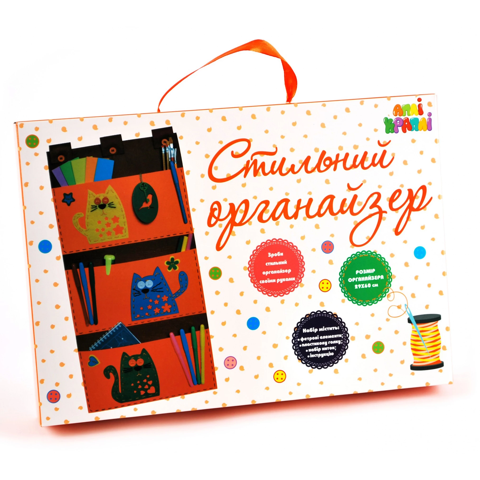 Щоб отримати гарний і оригінальний органайзер необхідно слідувати інструкції і крок за кроком виконувати пункти. На стильну основу пришиваються, спеціальною пластиковою голкою, різні елементи (фігурки, гудзики). Можна придумати свій авторський дизайн, а можна створити такий же, як на картинці. В отриманому органайзері можна зберігати різні прикраси, біжутерію та багато іншого. Його можна повісити на стіну або прикріпити до дверцят своєї тумбочки.