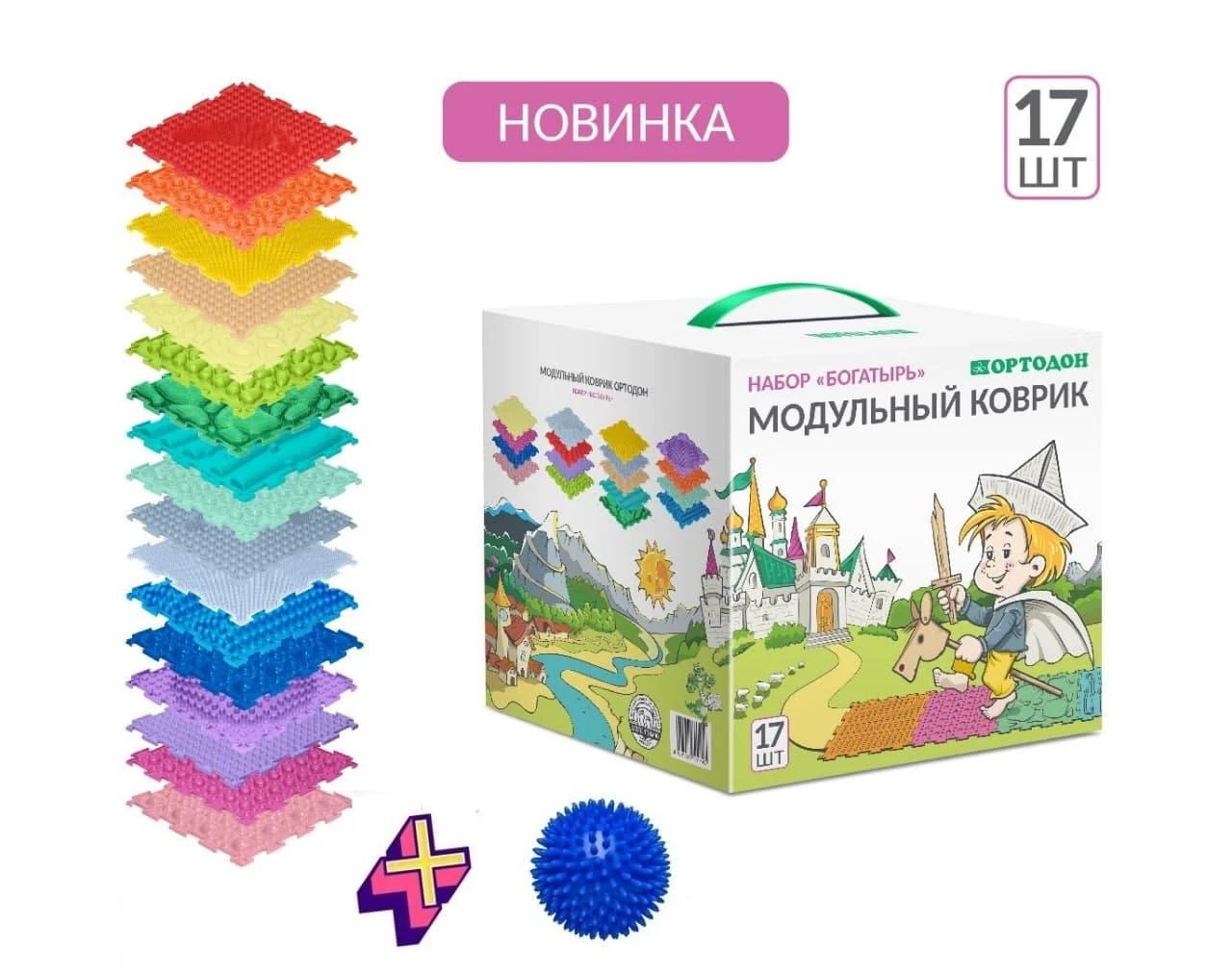 Ортопедический массажный коврик БОГАТЫРЬ 17 элементов