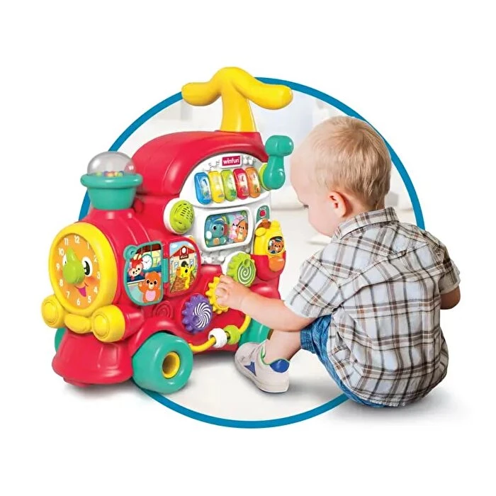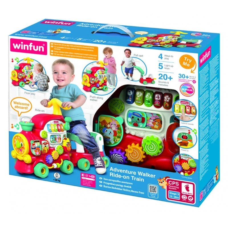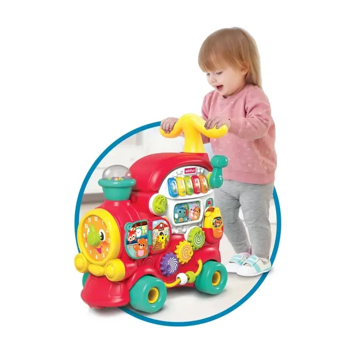 Навчально-розважальний поїзд Winfun — чудовий вибір для активного розвитку малюка від 12 до 36 місяців. Це універсальна іграшка «4 в 1», яка росте разом із дитиною: спочатку вона використовується для гри на підлозі, потім як ходунки-штовхачі, згодом як поїзд для катання та візок для перевезення улюблених іграшок.