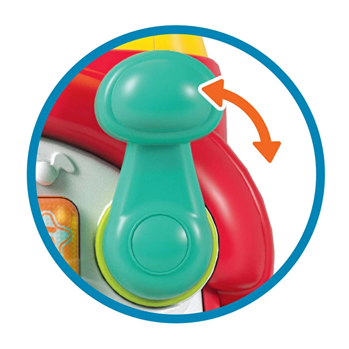 Поїзд має двомовний режим англійська та іспанська із веселими фразами й піснями, навчає кольорам, цифрам і формам. Малюка зацікавлять п’ять підсвічених кнопок, важіль, інтерактивні шестерні, рухомі намистини та димохід із «поп-ефектом». У комплекті є знімна рація для рольових ігор. Іграшка доповнена мелодіями, звуками та миготливими вогниками, що робить гру ще цікавішою та пізнавальною.