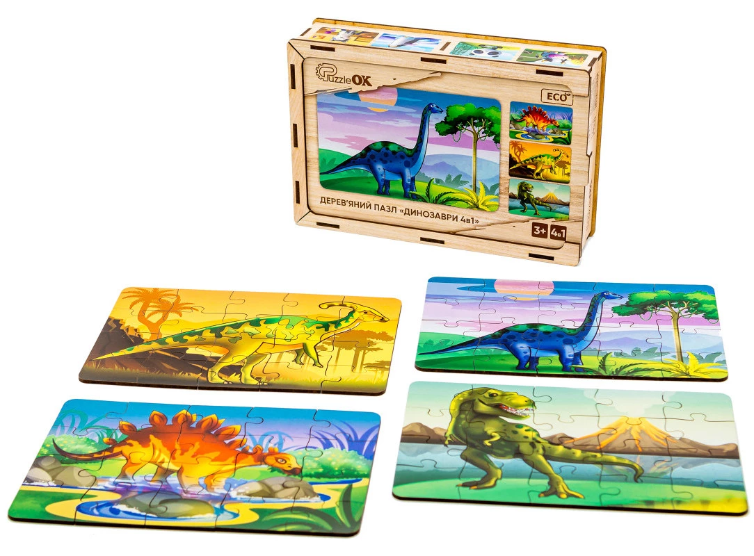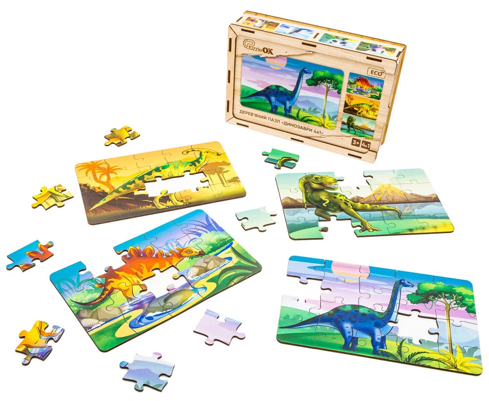 Відео Дерев'яний пазл 4 в 1 Динозаври від PuzzleOk