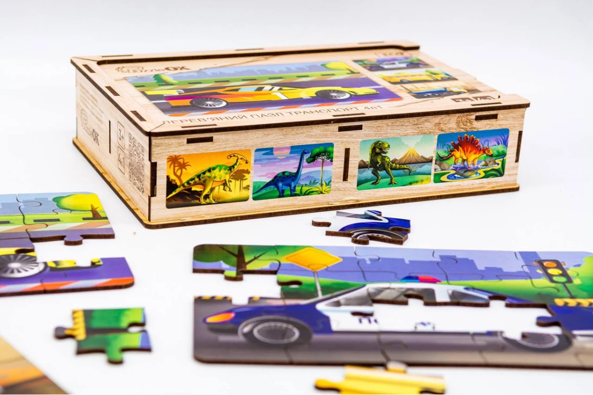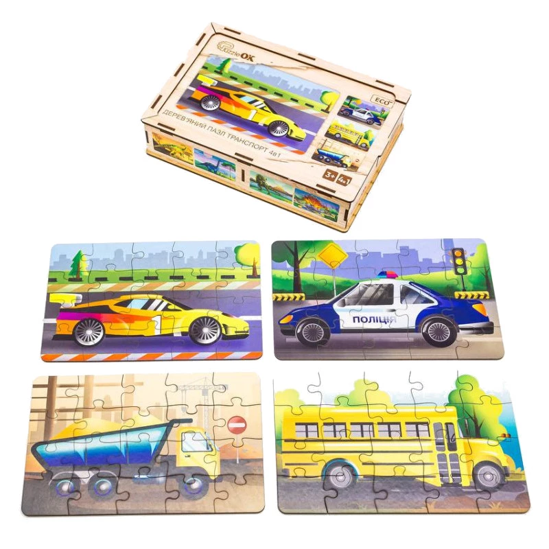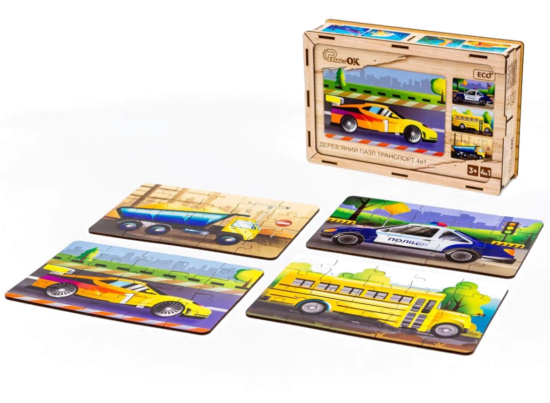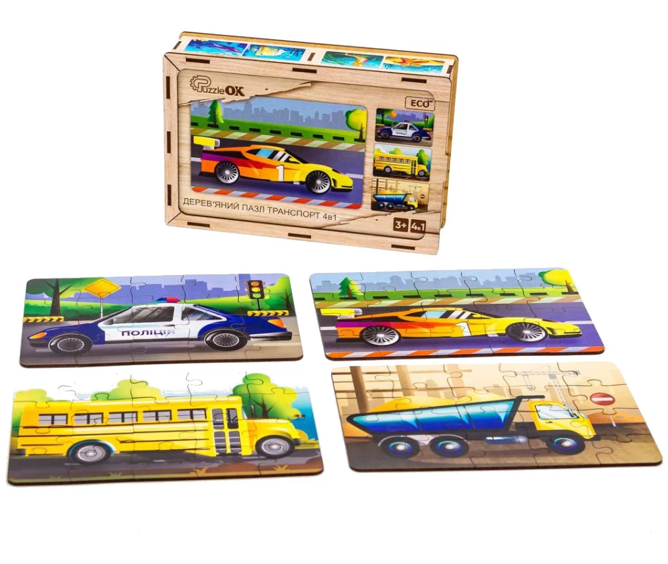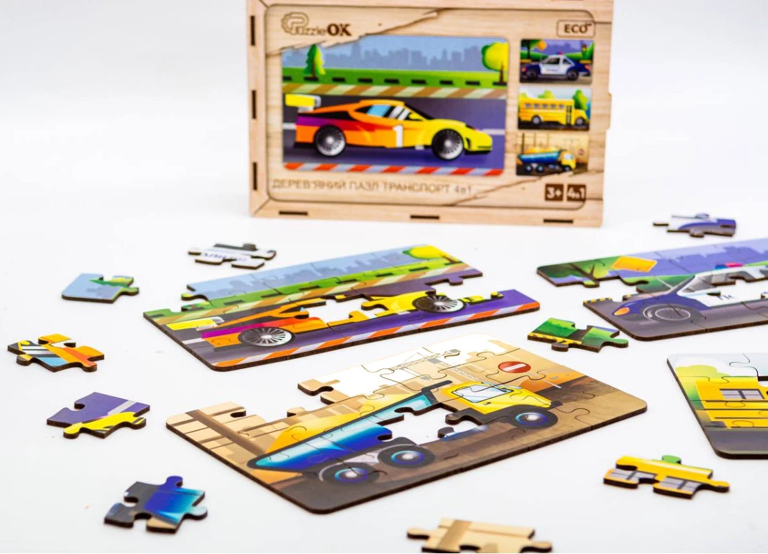 Відео Дерев'яний пазл 4 в 1 Транспорт від PuzzleOk