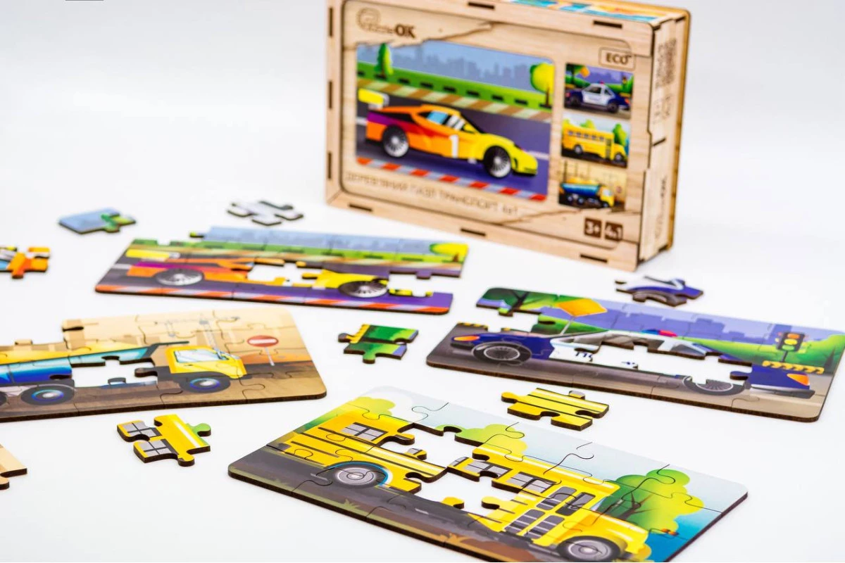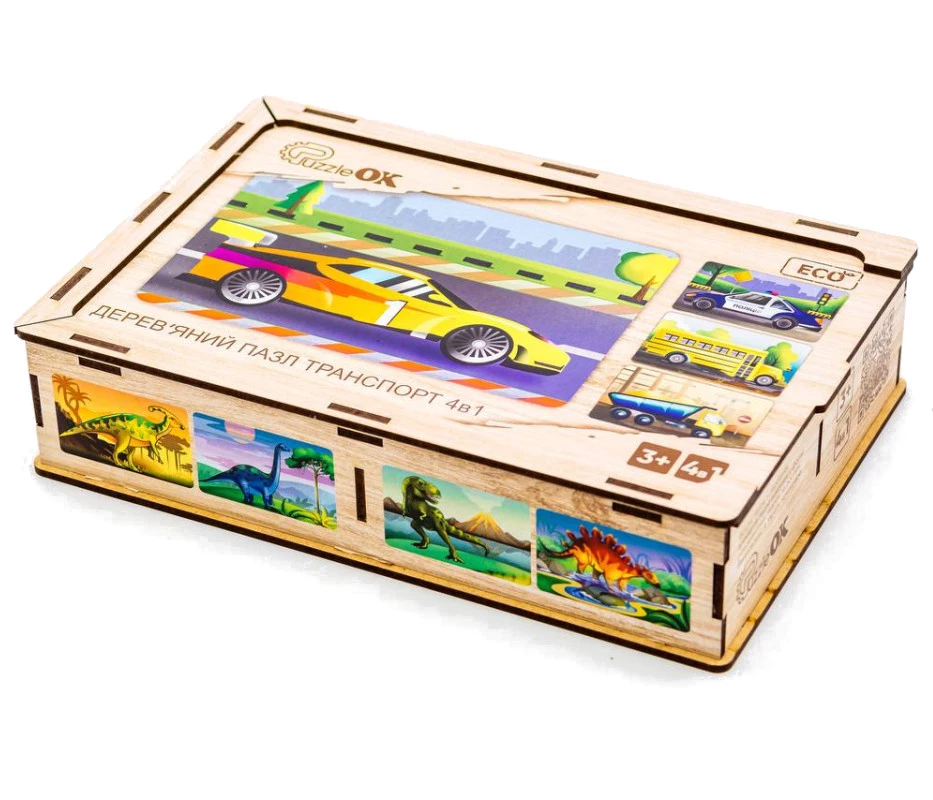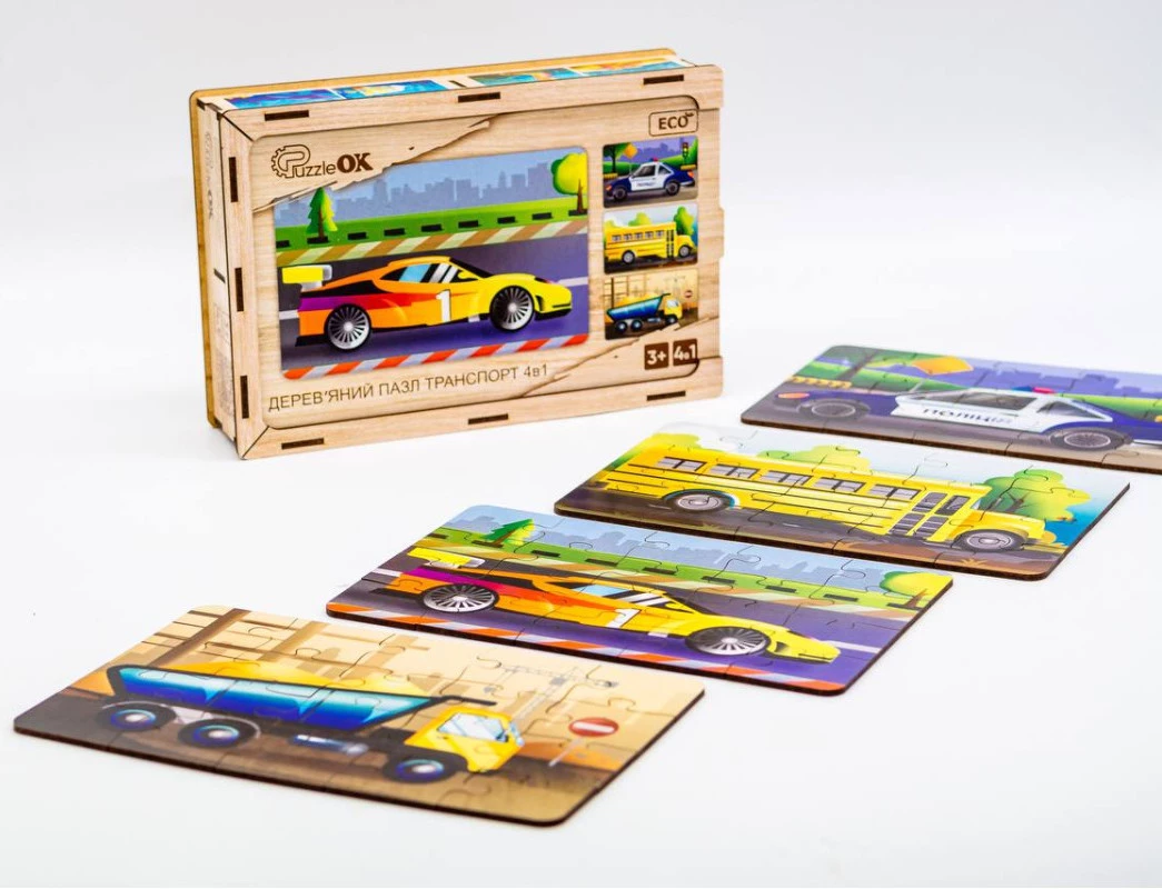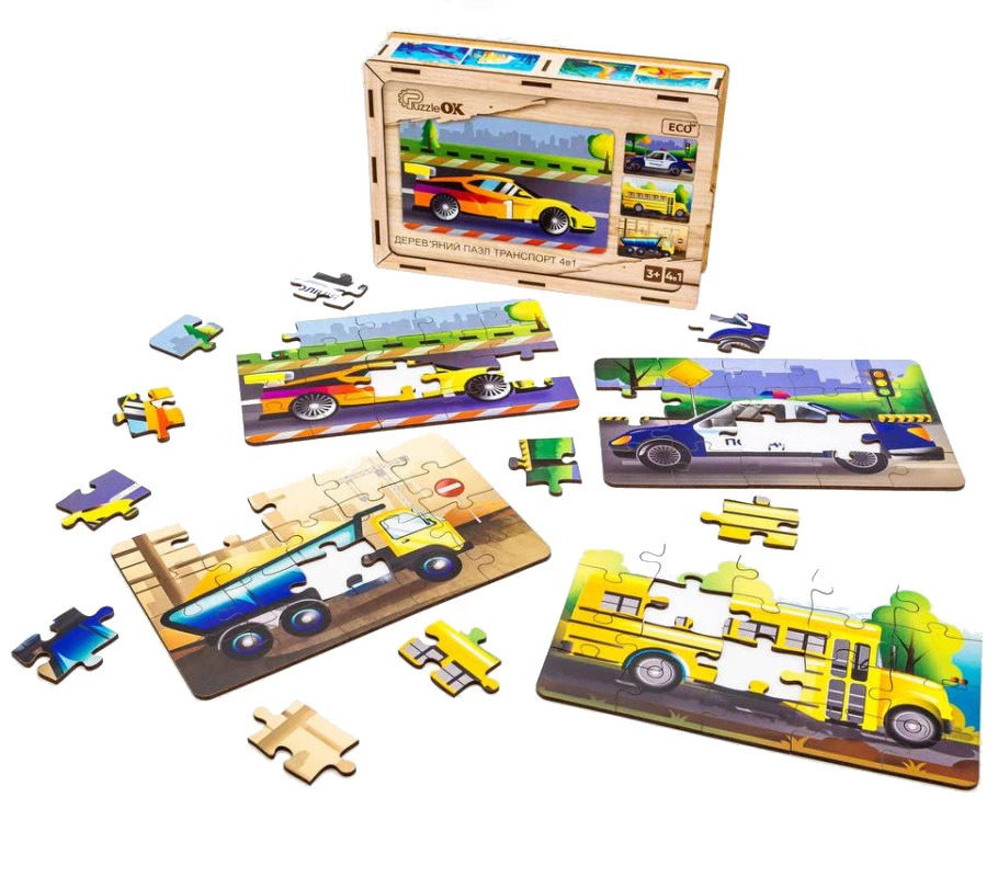 Відео Дерев'яний пазл 4 в 1 Транспорт від PuzzleOk