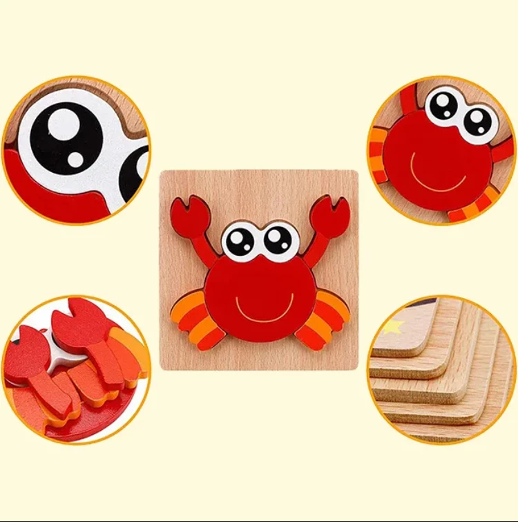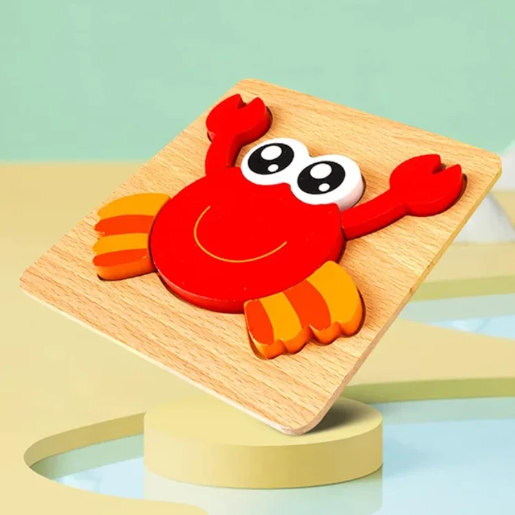 Бачите як весело посміхається цей милий краб? Їй подобається вчити маленьких непосид кольорам і формам. Краї елементів пазла закруглені і добре відполіровані. Набір стане відмінним посібником для знайомства дитини з кольорами і формами. А зручна дерев'яна підставка підкаже маляті як правильно зібрати пазл.
