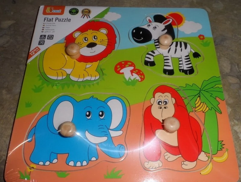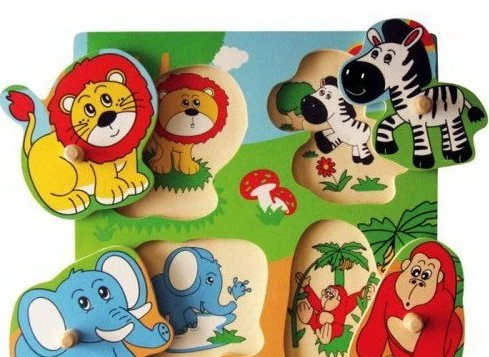Краща гра для малюків, щоб вивчати навколишній світ диких тварин. Рамка з підкладками підказками - які допоможуть дитині правильно знайти підходящу фігурку пазла. Щоб малюку було зручно брати фігурки - на них є дерев'яні ручки.