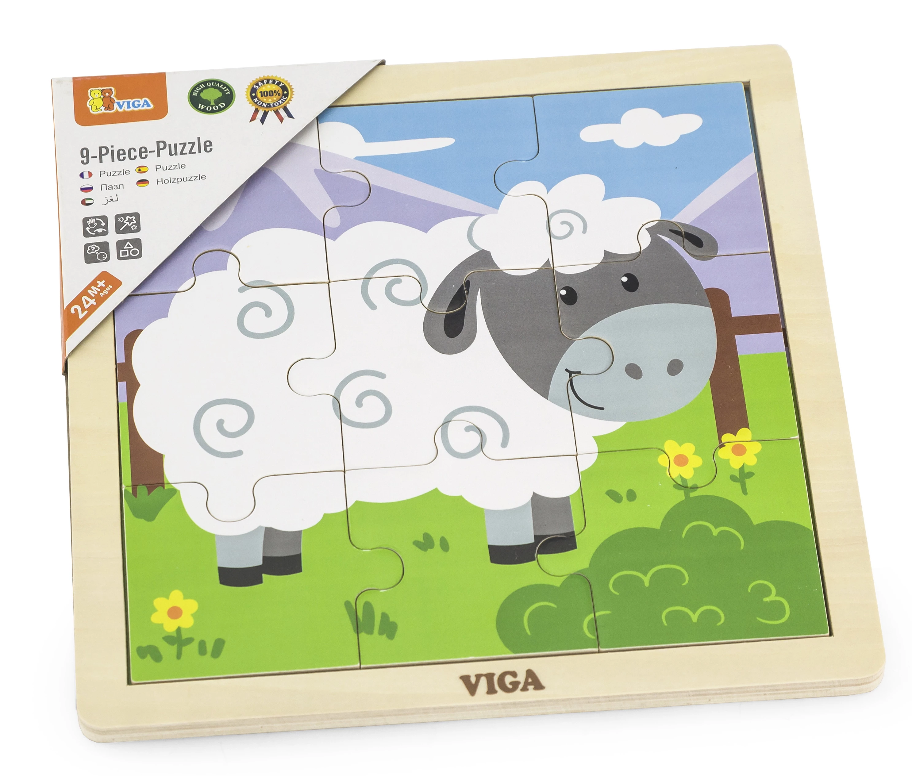 Мила пухнаста овечка пасеться на зеленому лузі. Такий барвистий і яскравий пазл точно сподобається малюку і захопить його на години. Набір зроблений з дерева, всі края добре відшліфовані. Дитина повинна правильно зібрати 9 елементів в дерев'яній рамці, розвиваючи координацію роботи рук і очей.