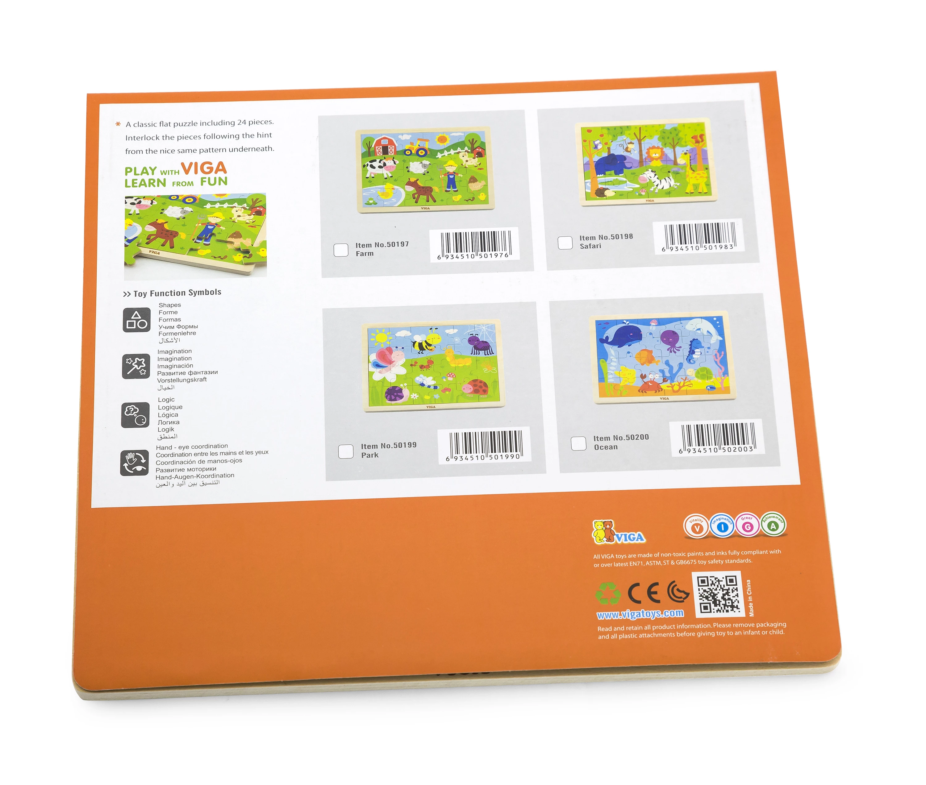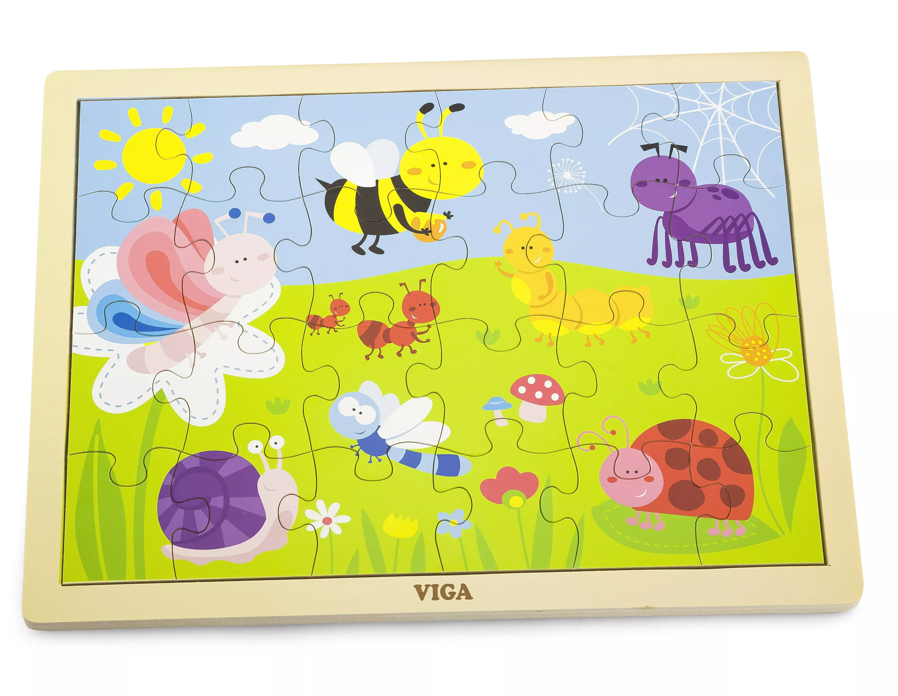 Сонячний кольоровий парк з комашками - це класичний пазл, в якому 24 дерев'яних елемента. Спочатку дитина уважно розглядає картинку, потім збирає пазл. Якщо не виходить, можна скористатися підказкою на рамці. Всі деталі з дерева, і розфарбовані яскравими безпечними фарбами.