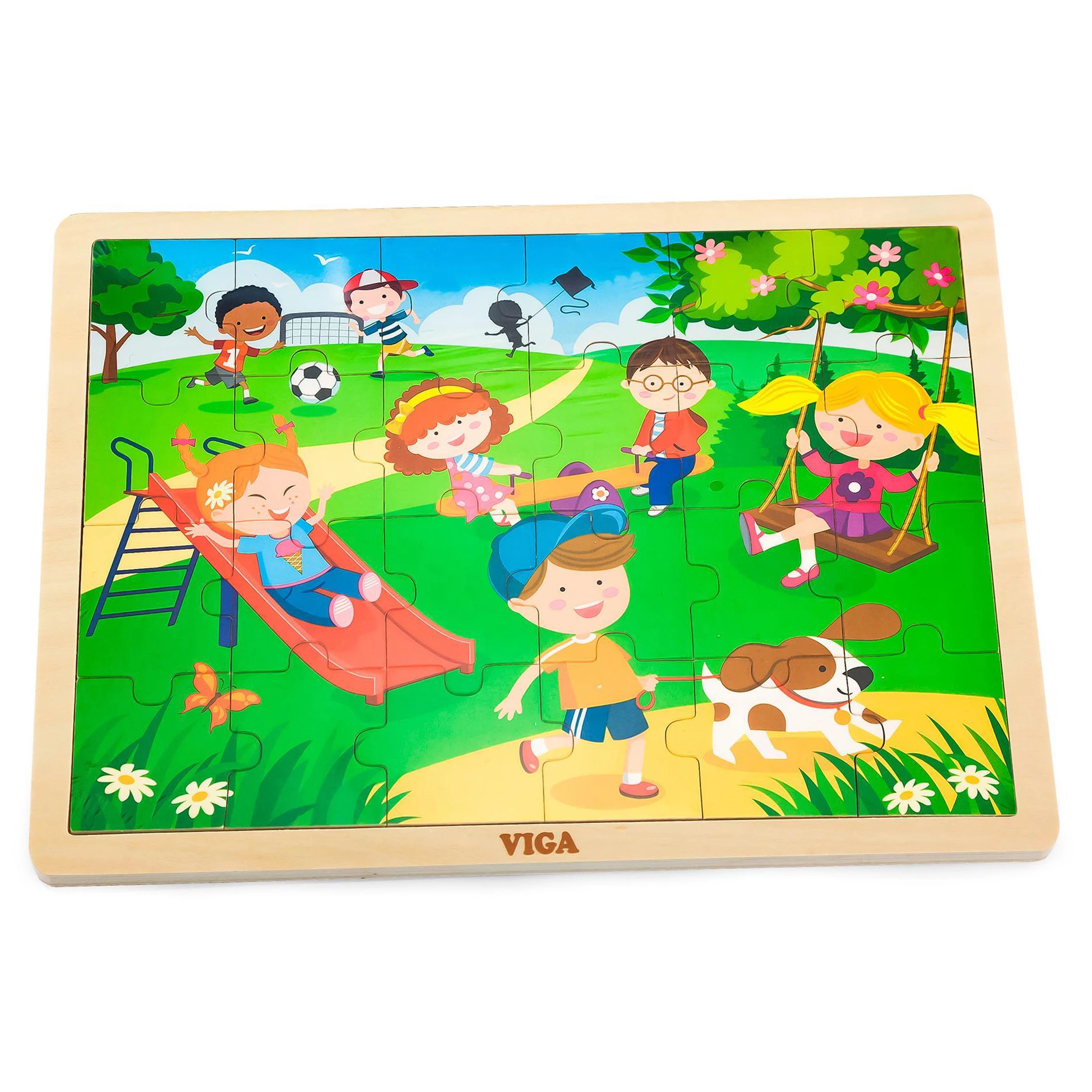 Щоб малюк не заплутався, на підкладці нанесений малюнок пазла. Пазл зроблений з дерева, деталі всі відшліфовані.