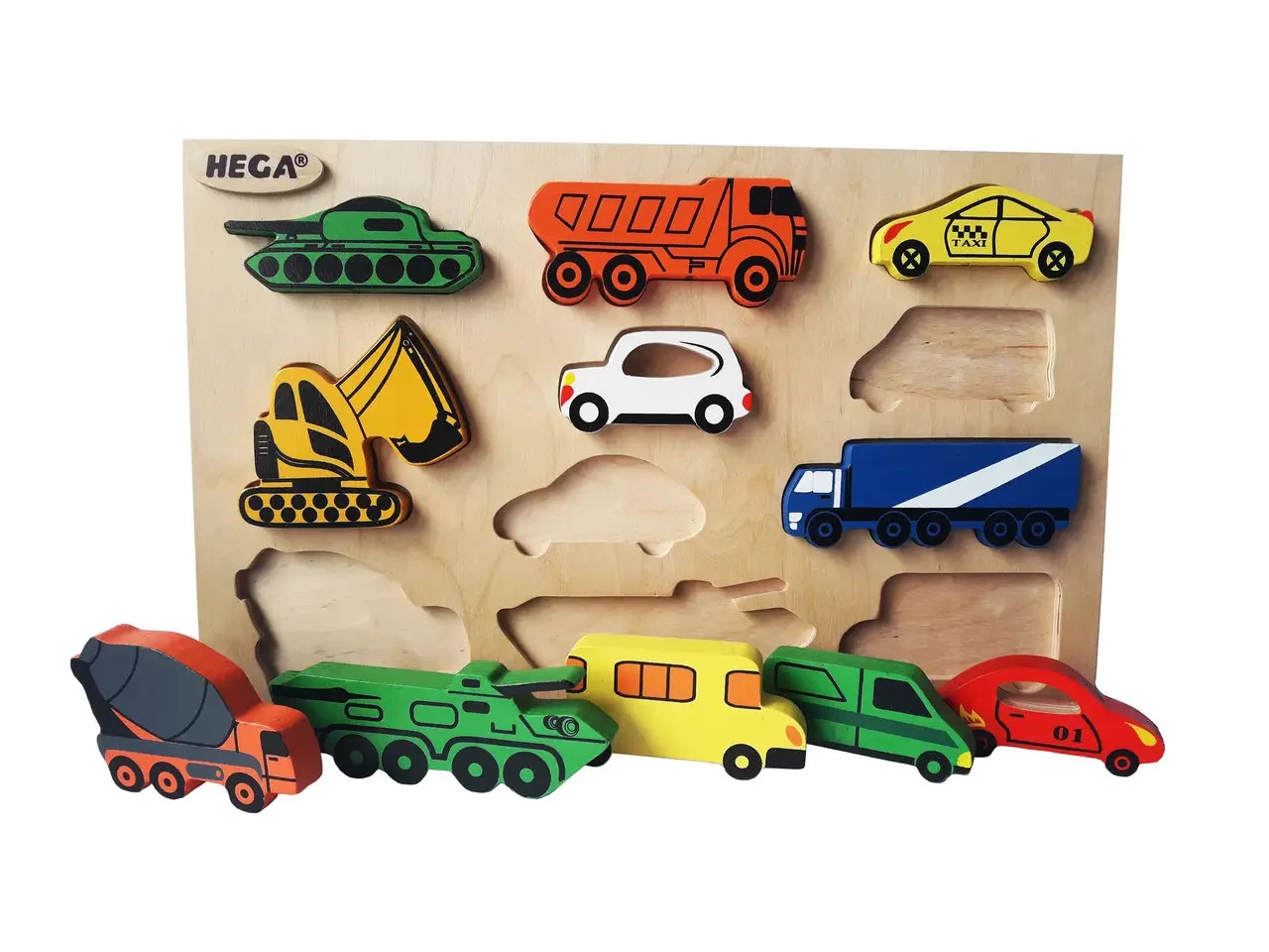 Важко знайти такого хлопчика, якому б не подобалися іграшкові машинки. В ігротеці кожного маленького автомобіліста неодмінно знайдеться безліч легкових чи вантажних автомобілів, іграшкової будівельної техніки тощо. Якщо ви хочете порадувати малюка цікавим подарунком, зверніть увагу на цю рамку-вкладиш від торгової марки Hega. До представленого набору входить 11 різноманітних машинок: це різні міські служби + військова техніка. Високої оцінки заслуговує дизайн і якість виготовлення іграшок. Кожна фігурка – це повністю готова, розфарбована з усіх боків повноцінна іграшка. Велика рамка-вкладиш стане гаражем для автотранспорту!