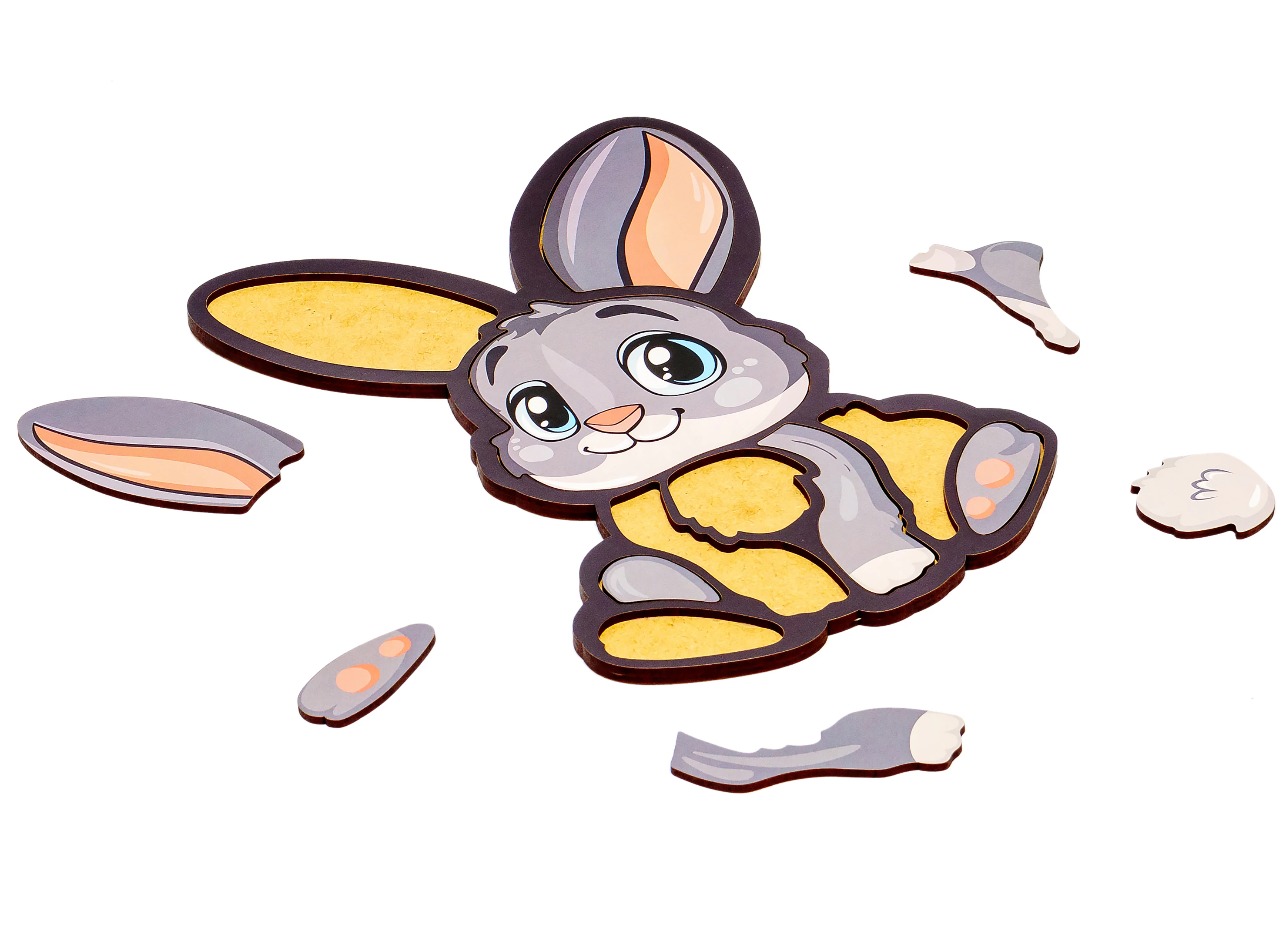 Цей яскравий пазл-вкладиш з великими деталями — цікавий та корисний подарунок для вашого малюка. Дана іграшка допоможе у розвитку дрібної моторки, логічного мислення та координації рухів. За допомогою деталей пазла дитина зможе створити милу картинку із зображенням зайчика.
