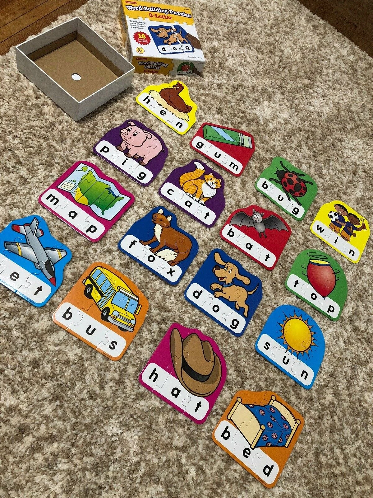 Мне нравятся картинки, размер и цвет этих пазлов. Это отличный продукт для начинающих изучать английский язык. Я использовала эти пазлы со своей дочерью, ей всего 4 года, и она любит складывать их вместе и узнает буквы и слова, когда пазлы сложены.