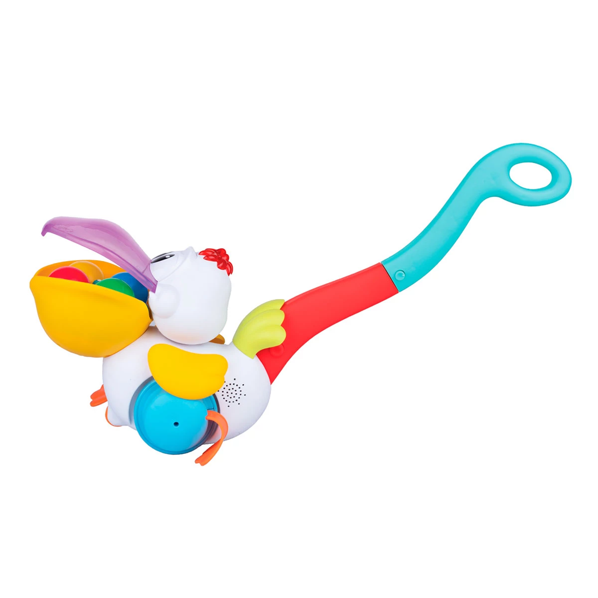 Розвивайте спритність та уважність ваших маленьких непосид, вчіть їх взаємодіяти з невеликими предметами, використовуючи цю чудову іграшку-каталку, виконану у вигляді пелікану.