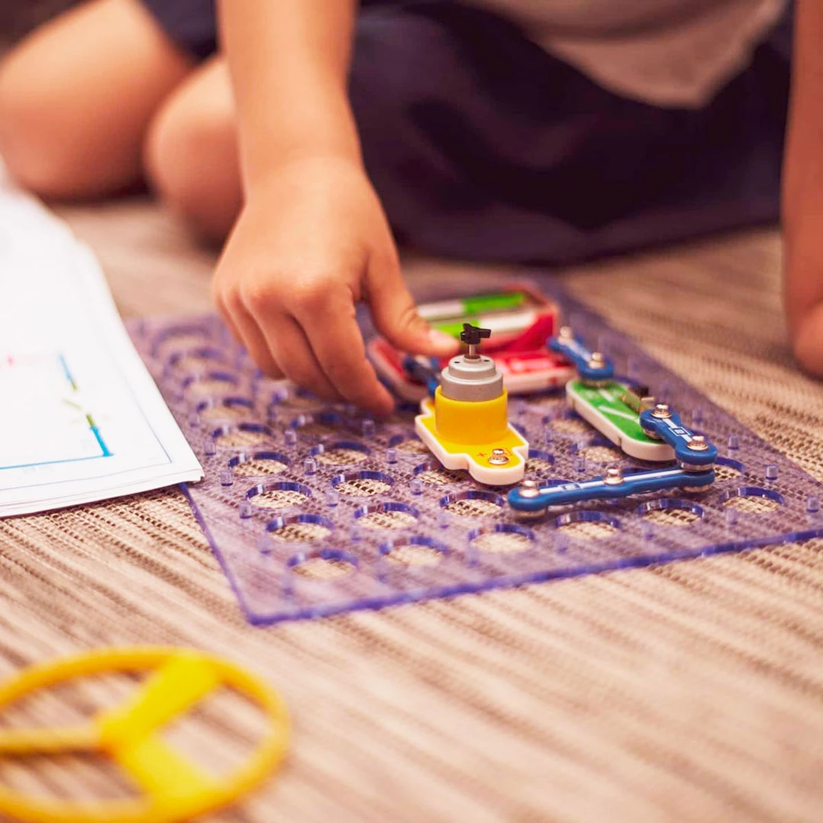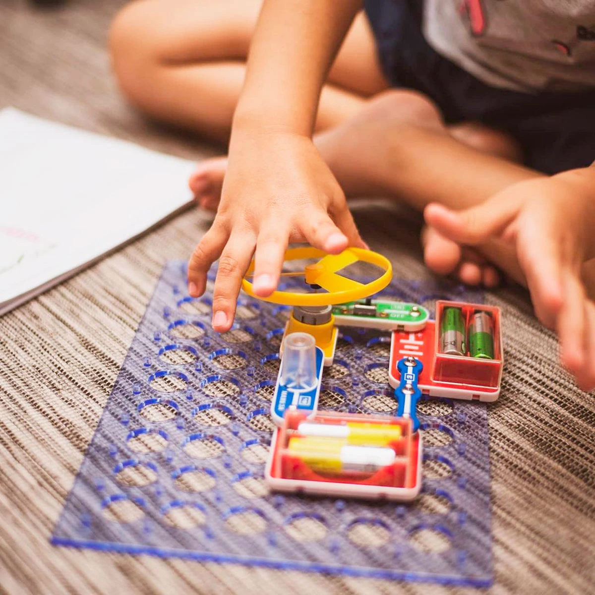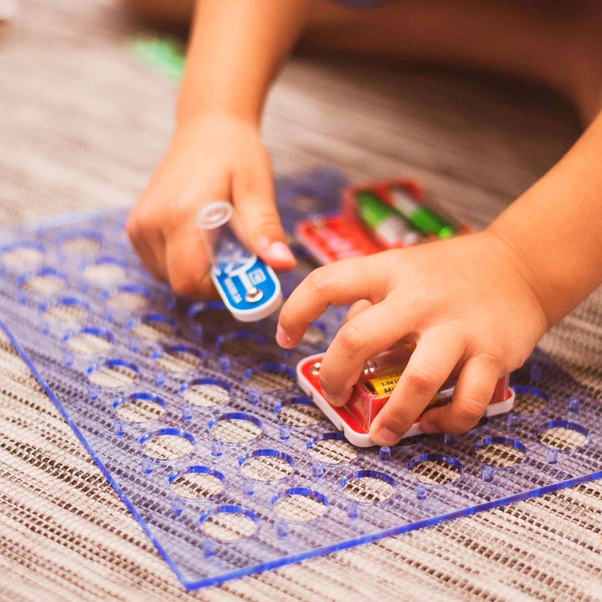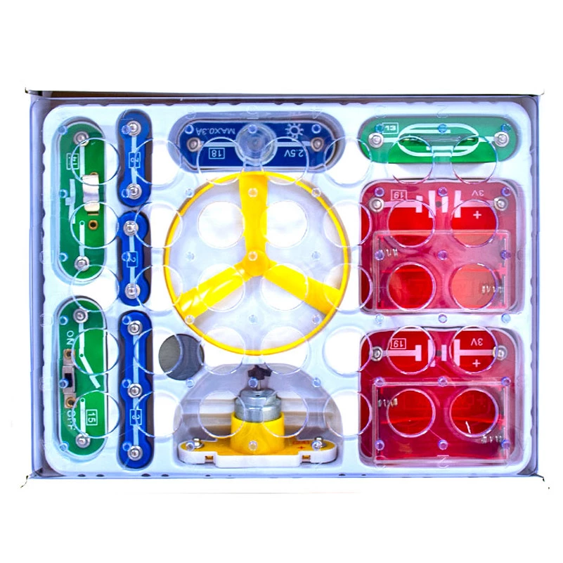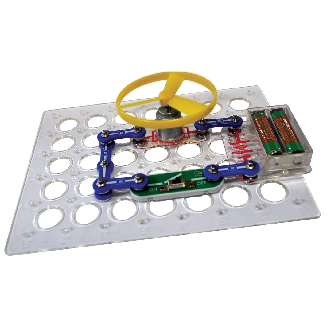 Перед вами унікальний конструктор, який дозволяє дітям від 5 років відчути себе справжніми інженерами! У представлений комплект входять елементи живлення, перемикачі, електричні двигуни та лампочки. Пропонується 15 різних схем, для збору яких дитина і використовуватиме вищезгадані предмети. При цьому використовується безпечний метод паяння.