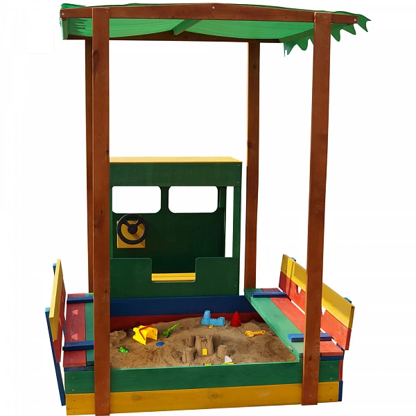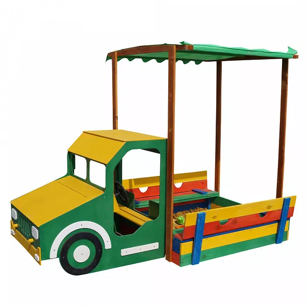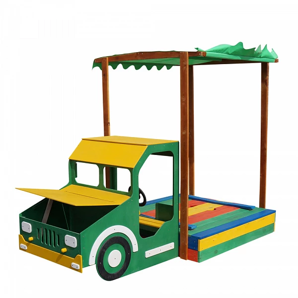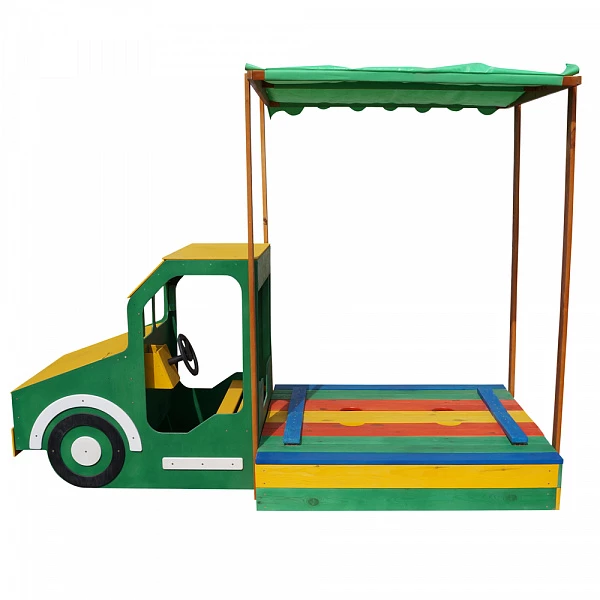 Пісочниця вантажівка внесе багато різноманітності і активних ігор для вашої дитини. У ній можна придумувати безліч розвиваючих ігор, і просто цікаво проводити час. Незвичайний дизайн буде добре виглядати в будь-якому дворі і залучати до гру. Дана конструкція продумана так, щоб було комфортно і безпечно для кожного знаходиться в цій пісочниці, а зручна кришка оберігає від небажаного забруднення і зручно трансформується в лавки, які роблять цю пісочницю ще більш затишною.