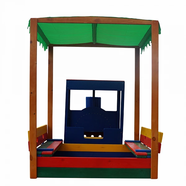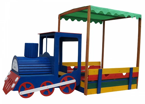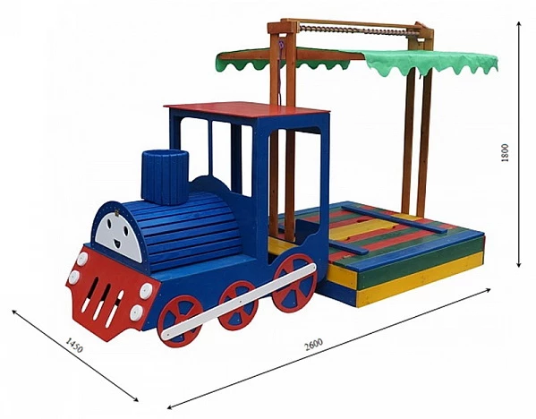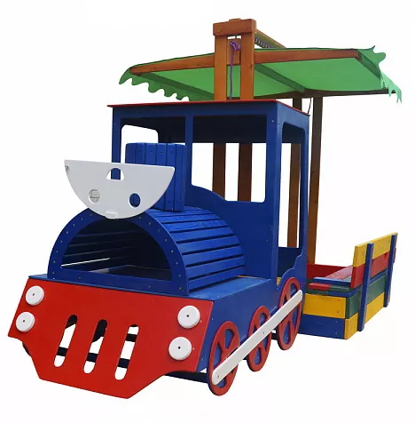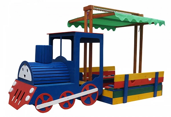 Незвичайний дизайн приверне до активної грі навіть саму спокійну дитину. Пісочниця-паровоз буде улюбленим місцем вашої дитини. У ній можна грати з піском, лазити або сидіти в паровозі. Кришка пісочниці дозволяє скласти її в зручні лавки або розкласти і заховати пісок від забруднення. Приємний яскравий дизайн впишеться в будь-яке місце вашого двору. На окрему увагу заслуговує якість цього паровоза.