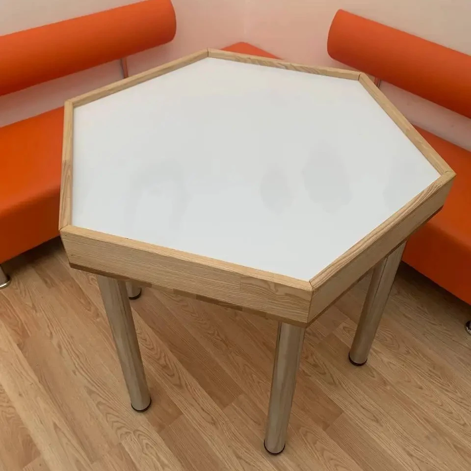 Шестикутна форма робить виріб стильним, а простора поверхня дозволяє зручно працювати навіть кільком користувачам одночасно.