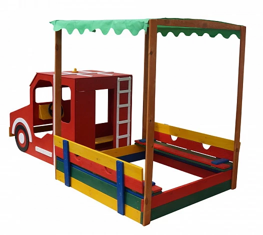 Хороший варіант пісочниці, в якій є все необхідне для активного і цікавого проведення часу. Зручна кришка закриває пісочницю від забруднення і легко трансформується в лавки. Пожежна машина зроблена так, що дитині буде зручно в ній сидіти і грати уявляючи, що він справжній пожежний. Крутиться кермо, відкривається капот і багато іншого що зацікавить будь-якого малюка і приверне до розвиваючої і захоплюючій грі.