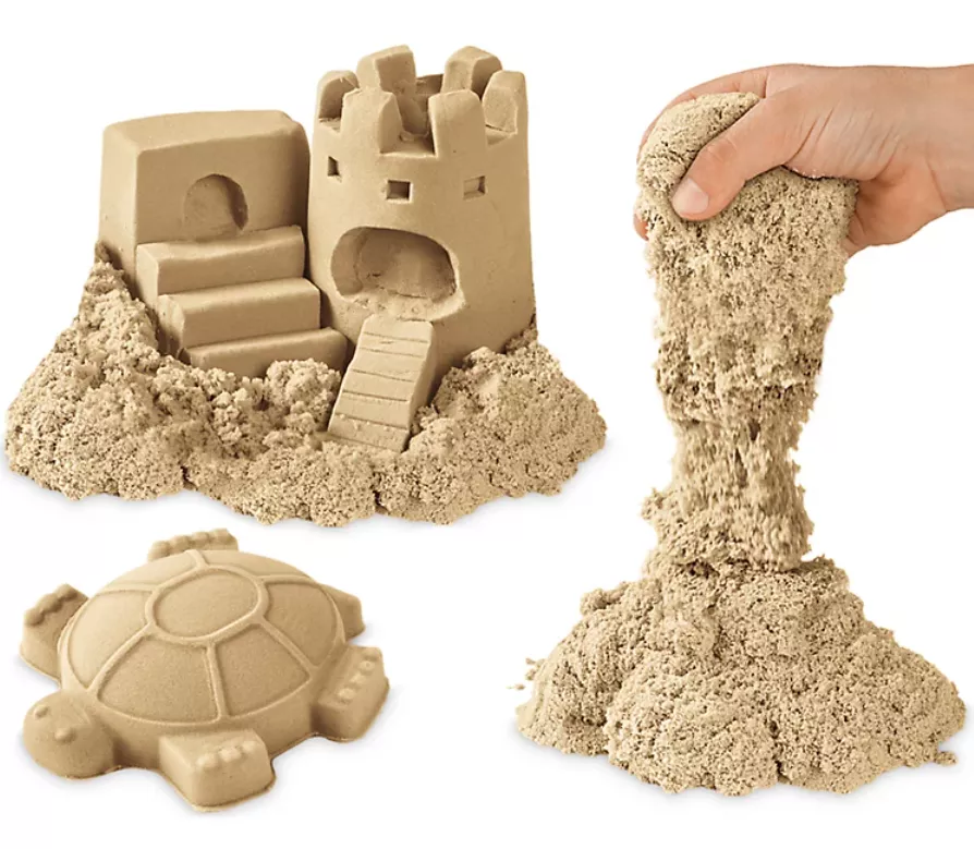 Це спеціальний пісок, який не висихає, залишаючись вологим, при цьому не прилипає до рук. Пісок ідеально підходить для будування замків, веж, скульптур або ліплення пасочок.