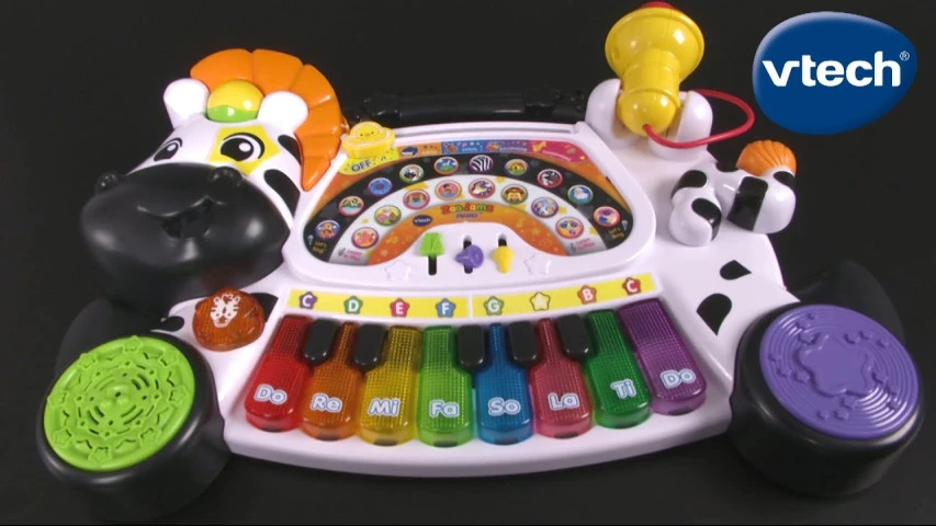 В піаніно Зебра є блискучі клавіші, так що малюк може навчитися грати пісню на трьох різних рівнях. Мікрофон дозволяє дітям підспівувати і чути їх власний голос; понад 100 пісень, мелодій, звуків і фраз.