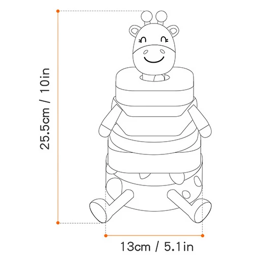 Пізнавайте світ разом з чудовою тактильною пірамідкою від Obetty! Ця яскрава м'яка іграшка у вигляді жирафа зроблена спеціально для маленьких дослідників. Перед вами не просто пірамідка, а творчий інструмент, який мотивує малюка вивчати форми, кольори, а також розвивати дрібну моторику.