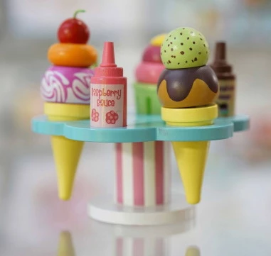 Іграшковий набір для приготування морозива. Ну яка дитина не любить морозива. Тим цікавіше вашій дитині буде зробити його самостійно, змінювати склад, додавати сиропи. Кожна порція виготовлена у формі піраміди, На формі-підставці поміщаються три порції морозива – фруктове, ягідне, шоколадне у вафельному ріжку та стаканчику, а ще два сиропи – шоколадний та малиновий. Іграшка виготовлена із міцного та безпечного матеріалу.