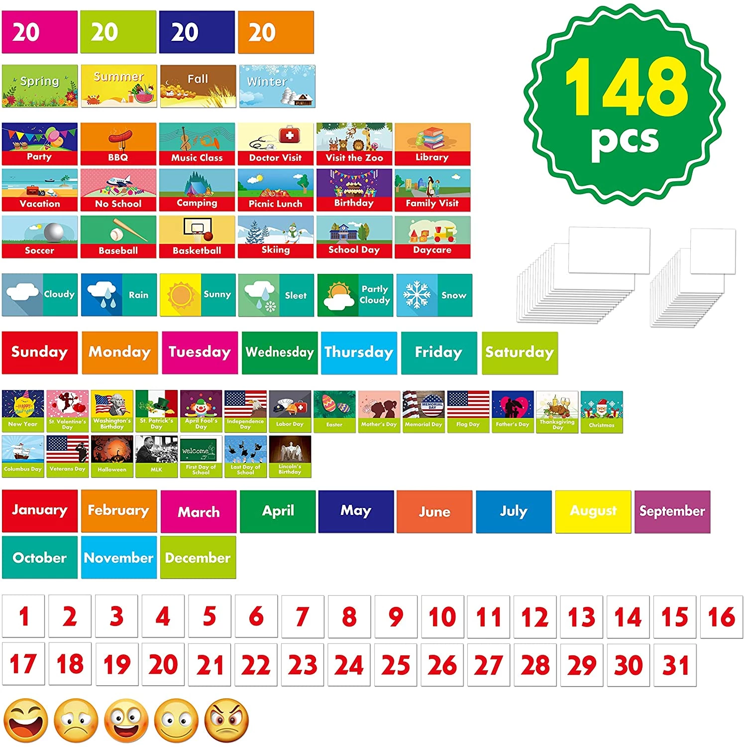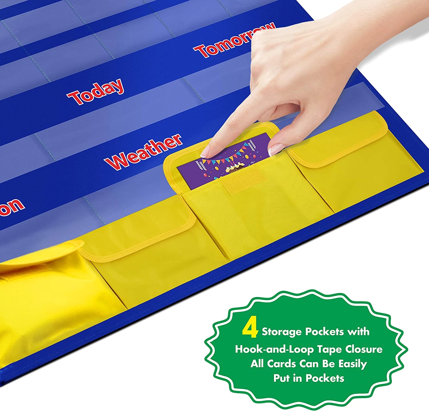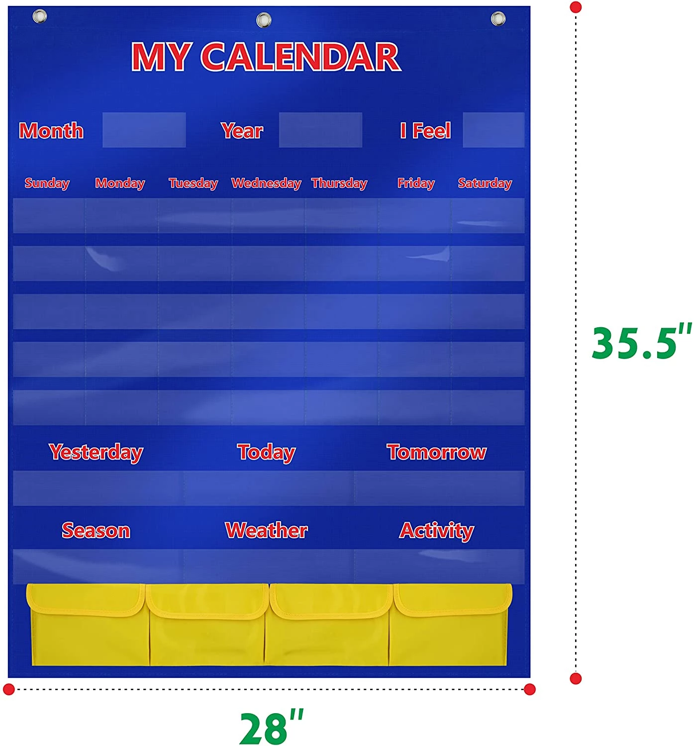 Calendar and Weather Pocket Chart with 148 Cards,(108 Illustrated Activity Cards