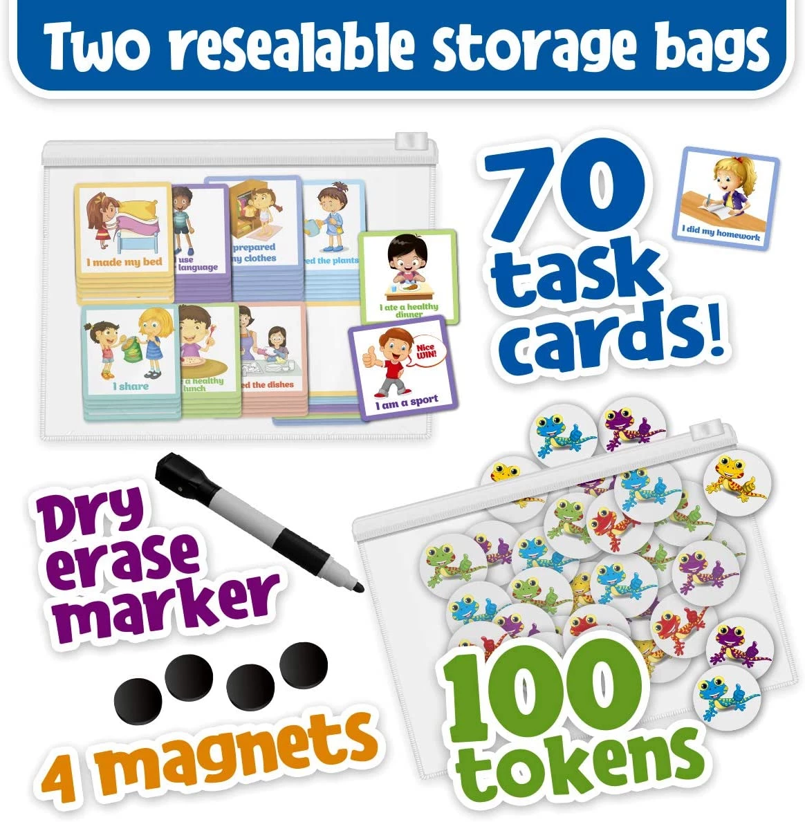 Reward & Responsibility Pocket Chart for Kids. 65+ Chores