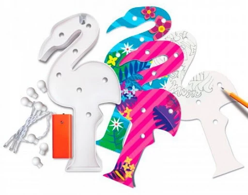 Набір для творчості "Підсвічування Фламінго" дозволяє підлітку самостійно розробити дизайн кімнатного аксесуара - лампи-підсвічування. Ви можете як встановити готові кольорові вставки, так і самостійно на свій смак розписати акрилом приготовлену білу вставку. При бажанні вставку можна в будь-який момент змінити під настрій! Для користування досить з'єднати всі деталі згідно з інструкцією.