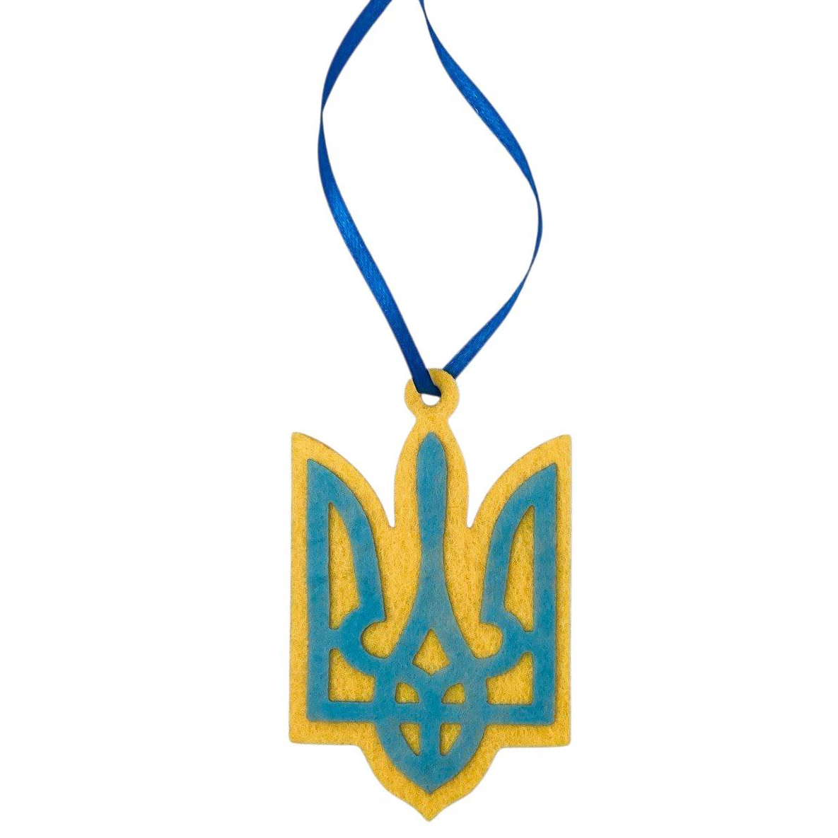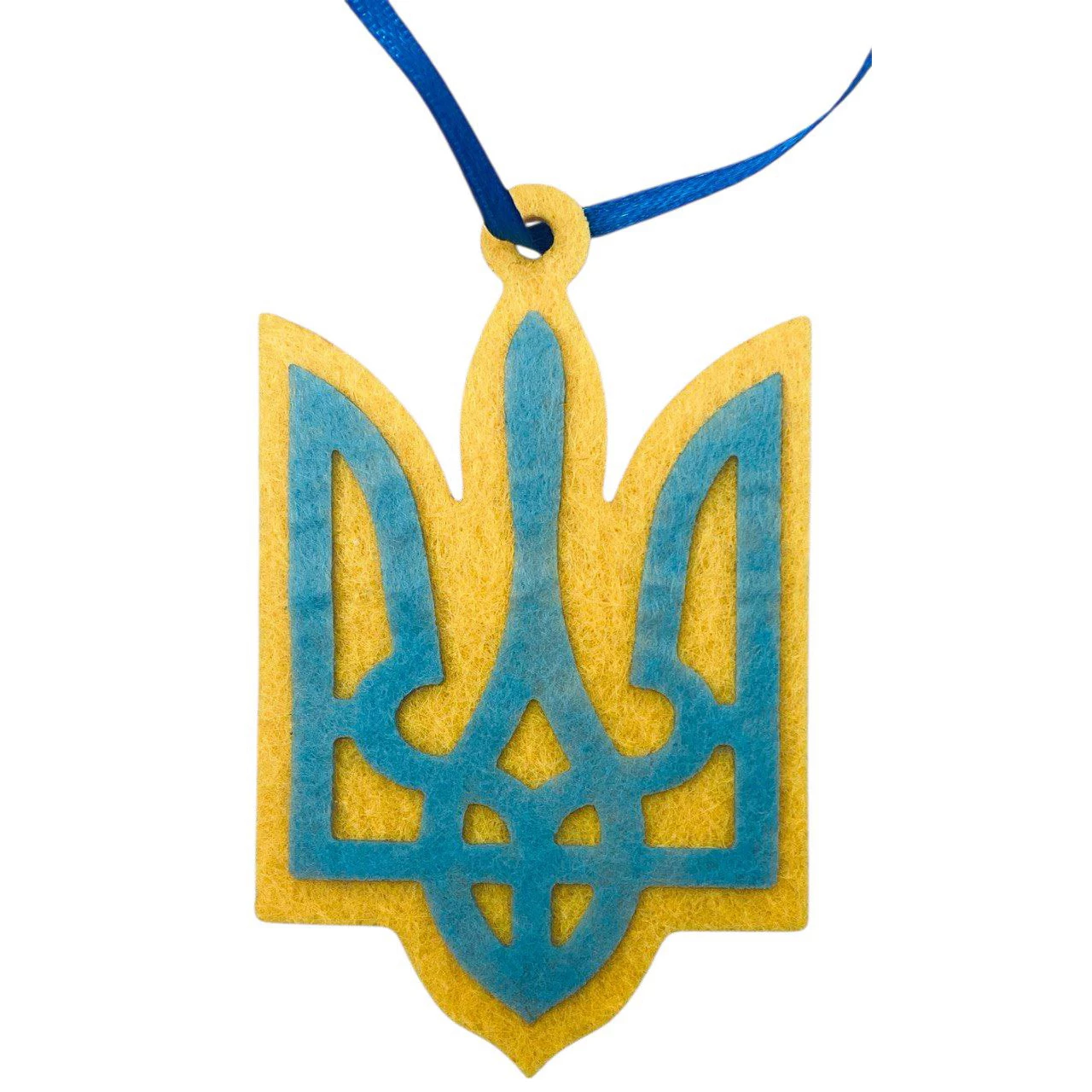 Бажаєте зробити приємний подарунок вашій дитині, знайомій чи близькій людині? Тоді зверніть увагу на стильну підвіску з фетру, виконану у вигляді Герба України. Прикраса, зроблена в жовто-блакитному кольорі, стане чудовим патріотичним декором. Така прикраса підійде для шкільного портфеля, жіночої сумочки; нею можна прикрасити салон автомобіля; виріб можна використовувати як брелок для ключів.