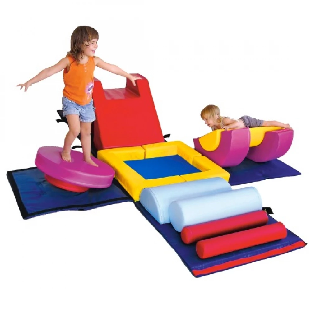 Весела м'яка смуга перешкод - це цілий спортивно-ігровий тренажер для дитини. Тут і балансування, перекиди, перевороти, повзання, стрибки та ін. Підійде для спортивних змагань, тренувань, навчальних програм фізичного розвитку. Безпечний для дітей. Гірка без бортиків.