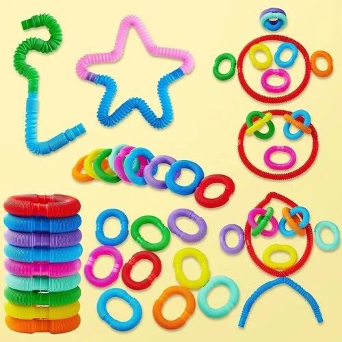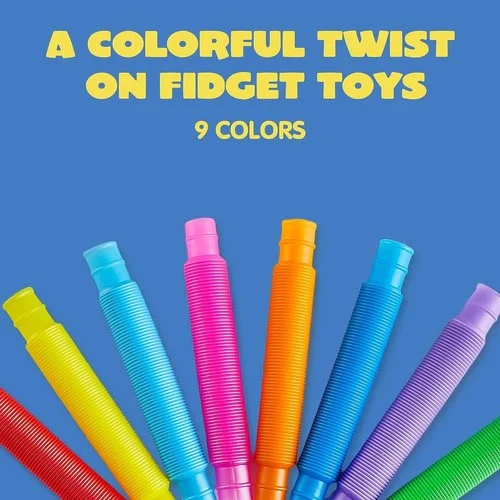 Набір включає 18 трубок 9 різних кольорів. Гофровані трубки від Joyin видають приємний звук, що плескає, коли ви за них тягнете, забезпечуючи тим самим зняття стресу і сенсорну стимуляцію.