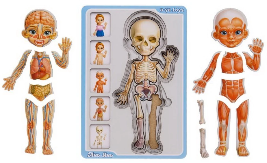 Захоплива гра, яка дозволяє вашому малюку швидко та весело вивчити анатомію людини. 5-шаровий пазл дозволяє побачити будову людського організму від скелета до цілісного вигляду. З його допомогою можна вивчити будову скелета людини, розташування внутрішніх органів, кровоносної системи, м'язової тканини та шкірного покриву. Ваша дитина розвиватиме дрібну моторику рук та логіку. Частинки пазла легко виймаються і закладаються. Іграшка може стати доречним розвиваючим подарунком для кожної дитини.