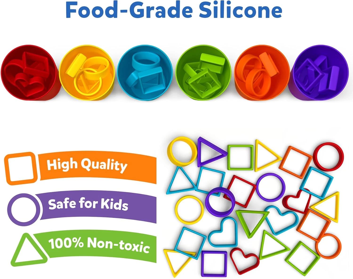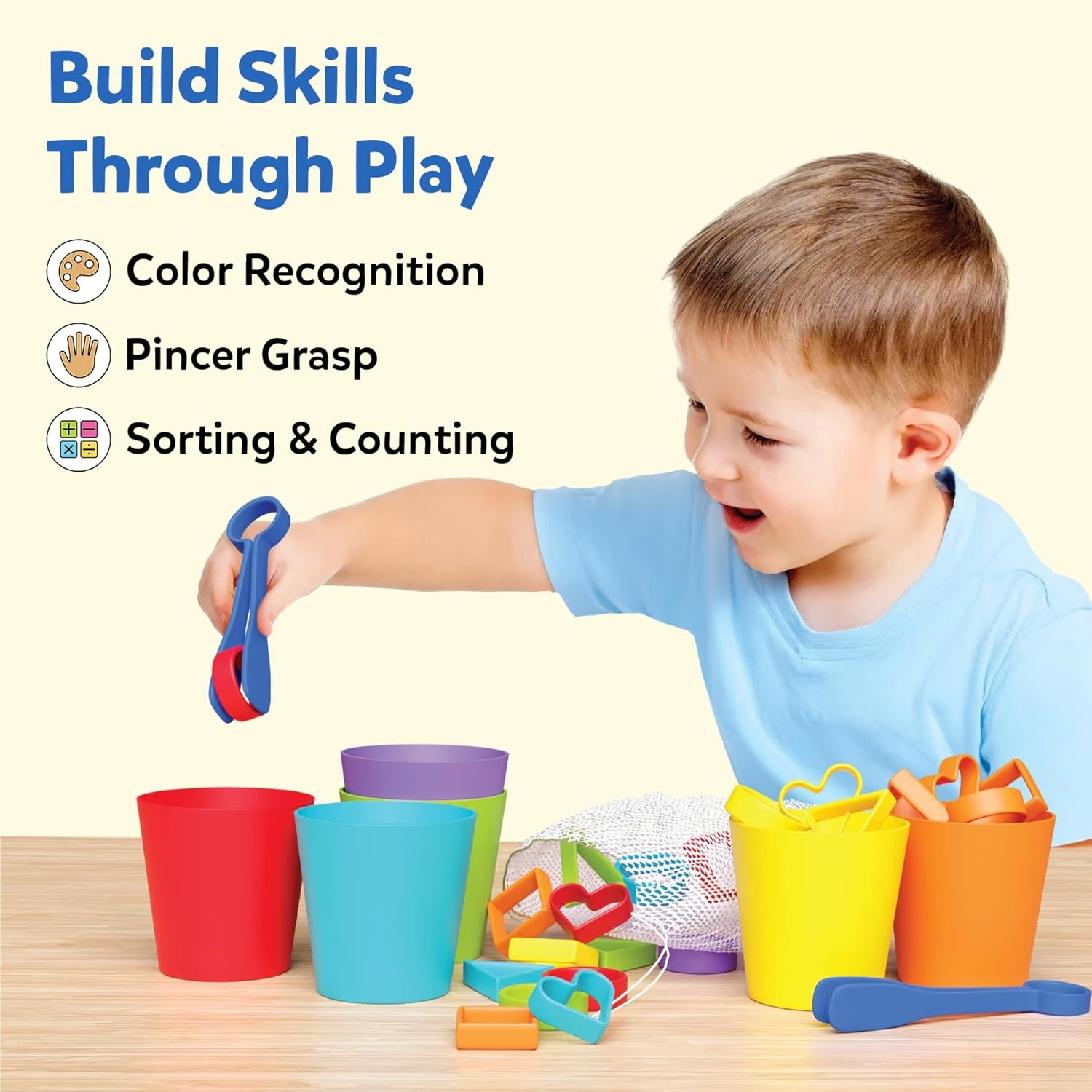 Допоможіть вашій дитині освоїти ключові навички через захопливу гру! Цей набір з високоякісного харчового силікону ідеально підходить для дітей від 3 до 6 років. Гра вчить розпізнаванню кольорів, форм та рахунку. За допомогою зручних щипців діти зможуть потренувати дрібну моторику та координацію, розкладаючи фігурки по стаканчиках.