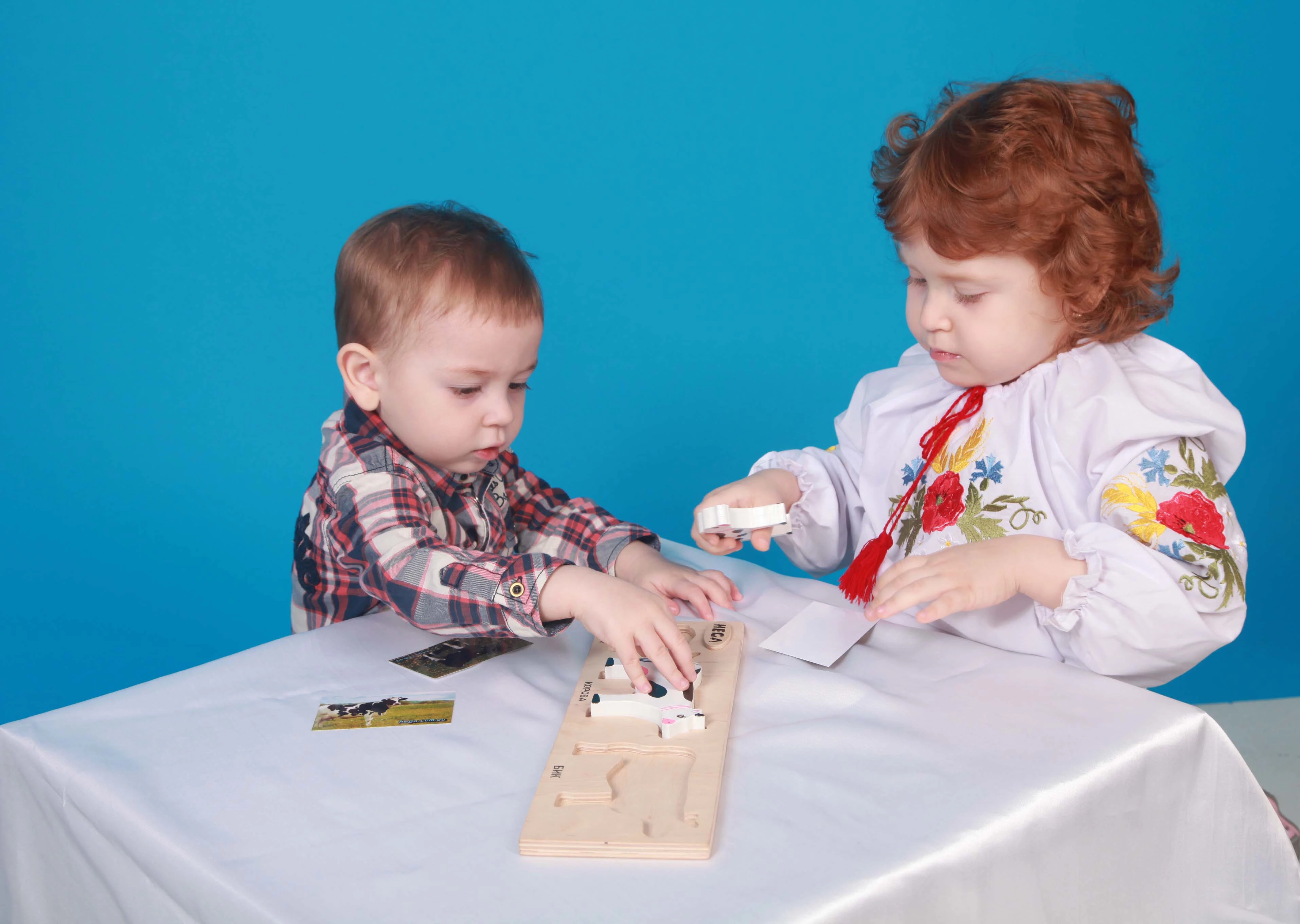 Всі елементи набору виготовлені з натуральної деревини та розфарбовані вручну нетоксичними фарбами на водній основі.