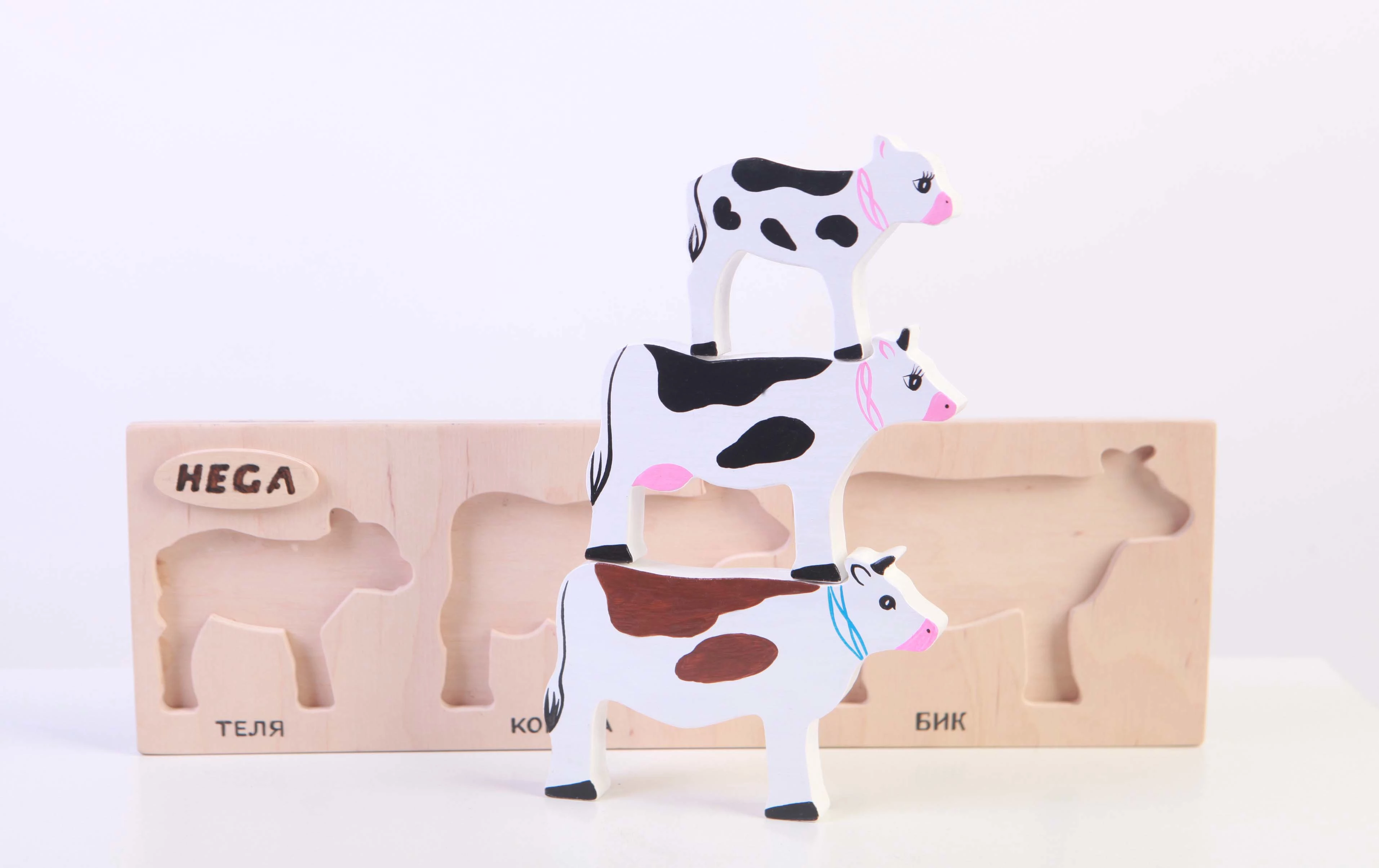 Пропонуємо до вашої уваги чудову іграшку для раннього розвитку вашої дитини — рамку-вкладиш «Корови» від української торгової марки Hega. Цей набір розроблявся за участю дитячих психологів та педагогів. Граючи з цією рамкою та фігурками, дитина навчиться спостерігати та порівнювати. Великі фігурки дарують можливість потренувати дрібну моторику, координацію рухів та тактильні відчуття. Об'ємні дерев'яні фігурки можуть стояти!