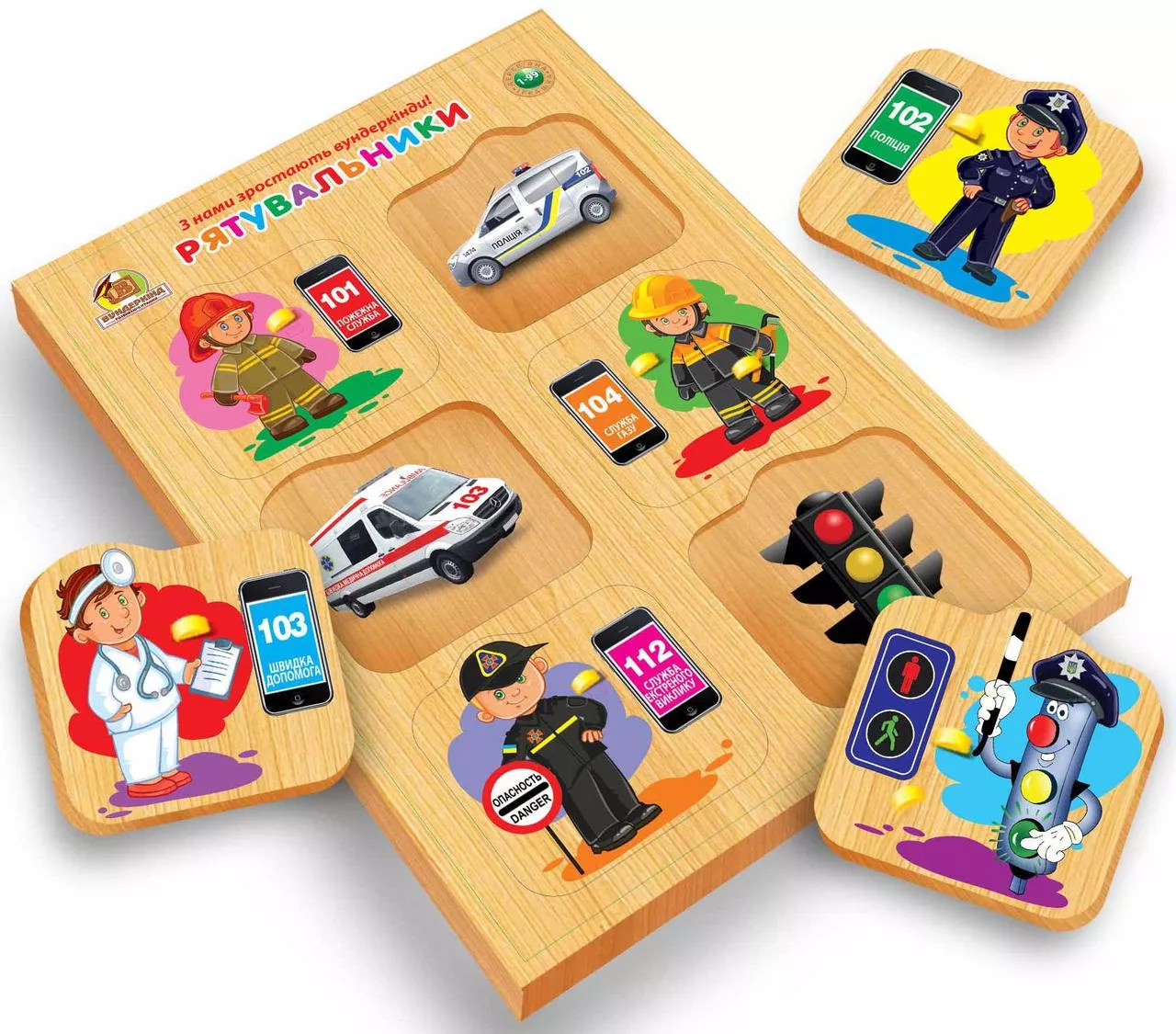 Рамка-вкладиш з підслоєм Рятувальники - цікавий методичний матеріал для занять вдома або в садах Монтессорі. На вкладках представники і номер телефону екстрених служб - а під ними, дитина знайде предмети які характеризують кожного рятувальника.