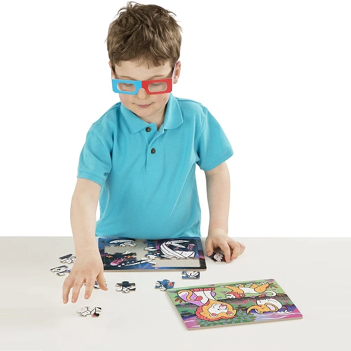 Порадуйте дитину незвичайним та оригінальним подарунком – розмальовкою по крапках від відомого бренду Melissa & Doug. Представлений набір включає 2 пазли - «Океан» і «Сафарі». Обидва пазли складаються з 24 деталей, які потрібно розфарбувати фломастерами або маркерами. Кожна деталь головоломки позначена крапкою певного кольору, яким потрібно розфарбувати елемент. Набір укомплектований 3D-окулярами, які роблять картинки об'ємними. Цей набір для творчості позитивно впливає на творчі та мистецькі навички, а також почуття смаку.