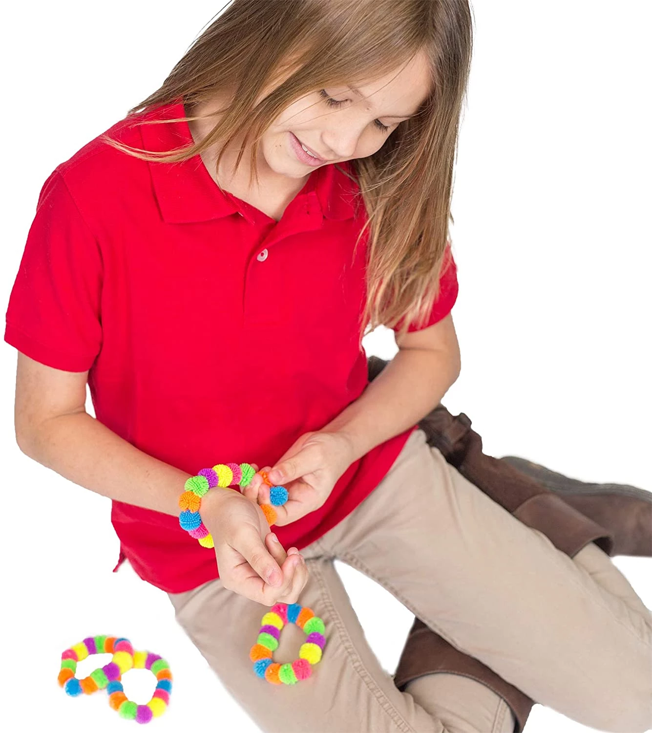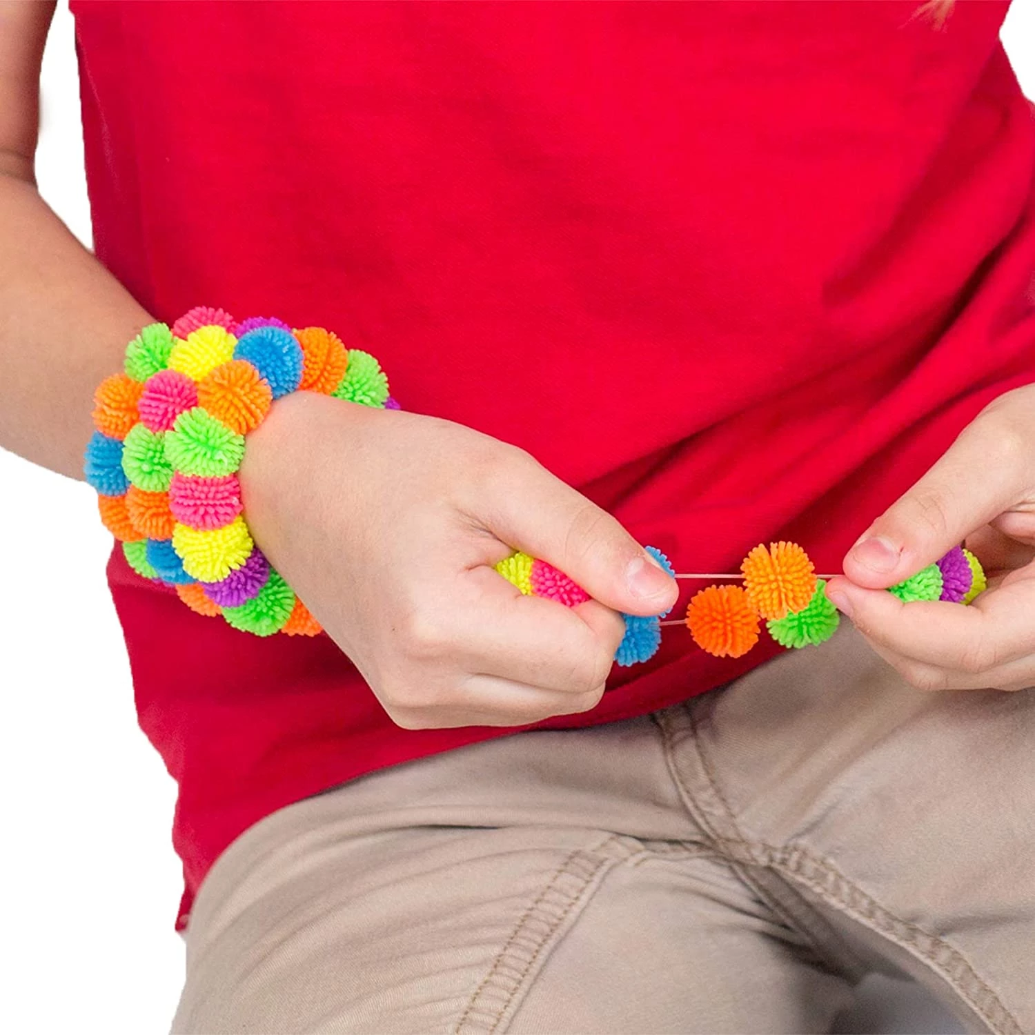 Набір спеціальних браслетів призначений для дітей, який часто бувають неспокійними і дратівливими. Їх фактура дарує різноманітні приємні тактильні відчуття і допомагає розслабитися. У кожному браслеті є 12 кульок з хвилястими гумовими шипами. Яскравий дизайн і м'який матеріал дуже подобаються дітям, вони з задоволенням носять такі браслетики. Одночасно можна надягати на руку кілька штук, вони відмінно підходять для щоденного використання. Допомагають зосередитися і стати більш уважним.