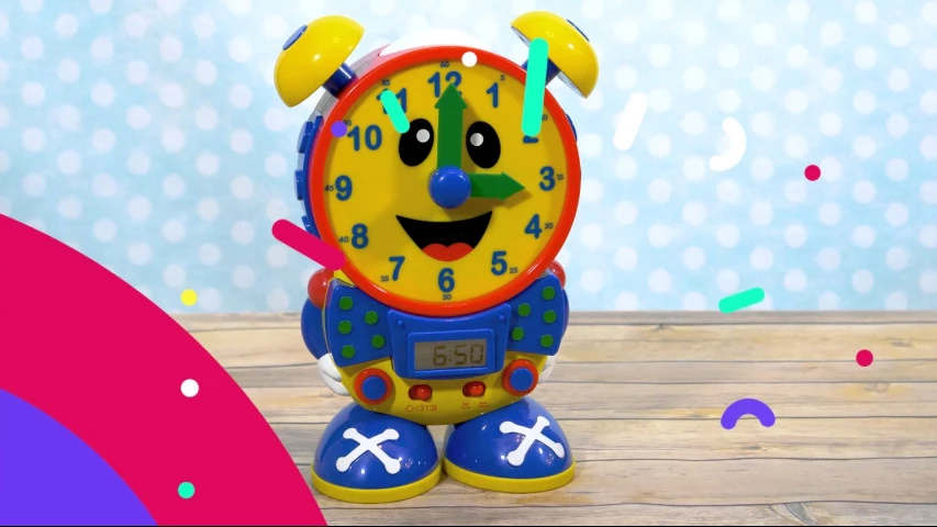 Вивчайте час з цими розмовляючими годинниками! Просто поверніть руки, потім слухайте, як годинник каже час і показує його на цифровому дисплеї. Або перейдіть в режим «вікторини», і діти повинні самі виставити правильний час. Ви навіть можете використовувати його як справжні цифровий годинник!