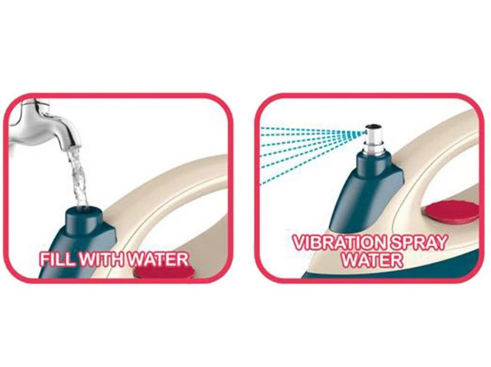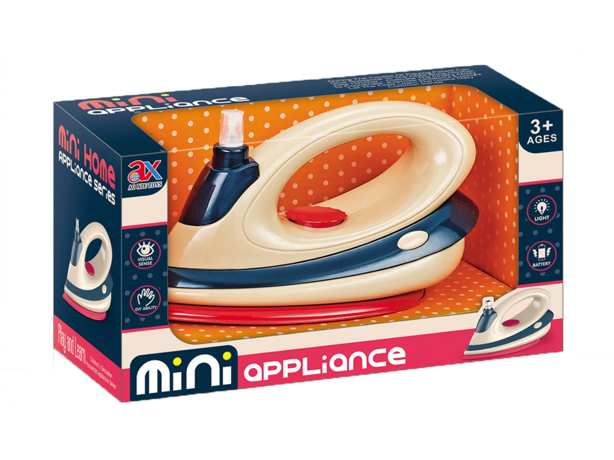 Іграшка імітує звуки та світлові ефекти справжнього побутового приладу. Праска оснащена розбризкувачем води і коліщатком терморегулятора, що обертається.