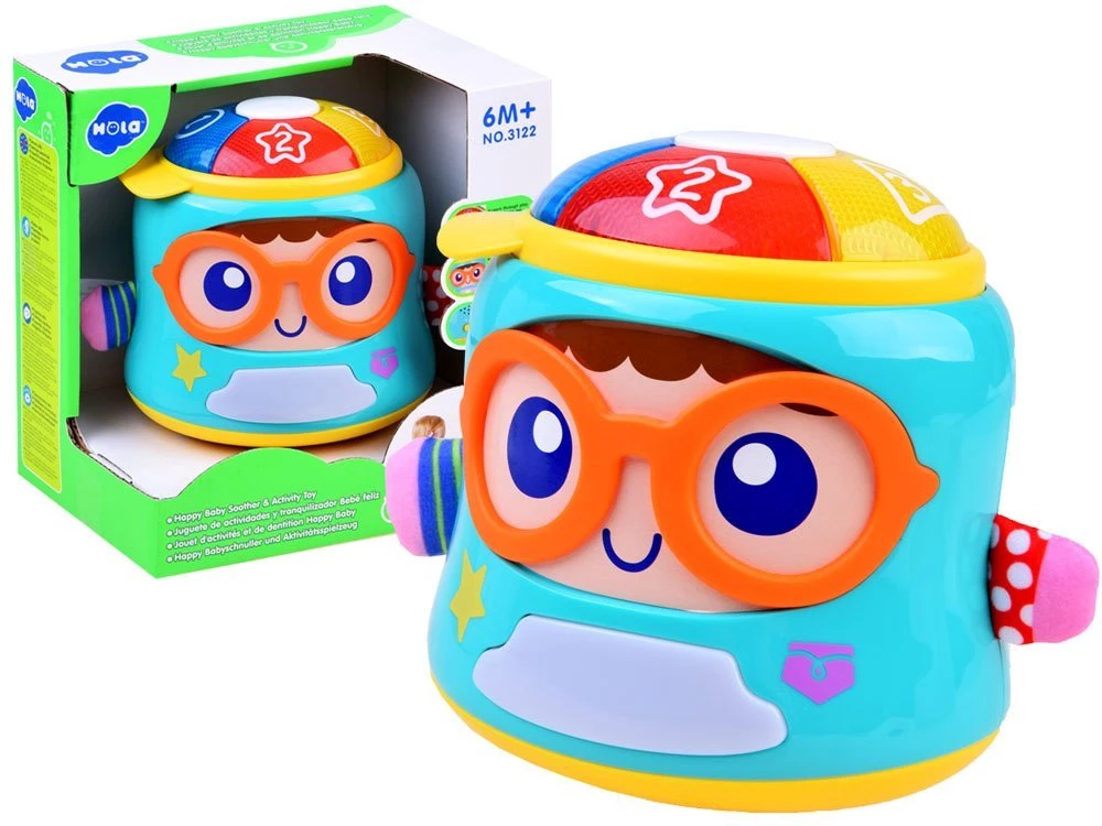 Цей щасливий малюк точно приверне увагу вашої дитини. У цій іграшці є світлові ефекти, музика, англійські слова. У цьому малюку поєднуються два режима: вивчення і гра. Натискаючи різнокольорові кнопочки на кепці - дитина чує музику, числа, кольори і форми.