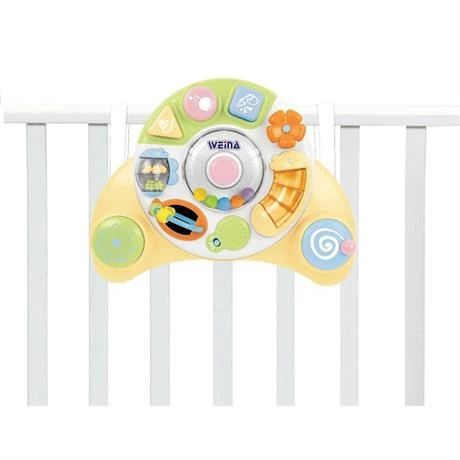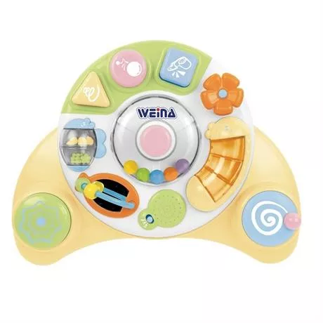 У центрі іграшки є коло з кульками, при натисканні на кнопку, різнокольорові кульки починають крутитися. Невеликий лабіринт-рибка з дзеркальцем розвиває дрібну моторику, брязкальце-бджілка видає приємне торохтіння. Іграшка може видавати різні звукові сигнали і блимати лампочками.