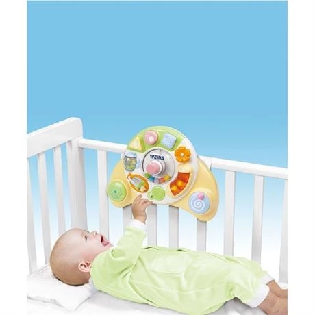 Цей музичний центр можна використовувати з народження малюка. Його можна прикріпити на ліжечко або коляску спеціальними ременями (є в комплекті). В іграшці є кілька мелодій. Коли дитина почне повзати, іграшку можна використовувати для гри на підлозі.