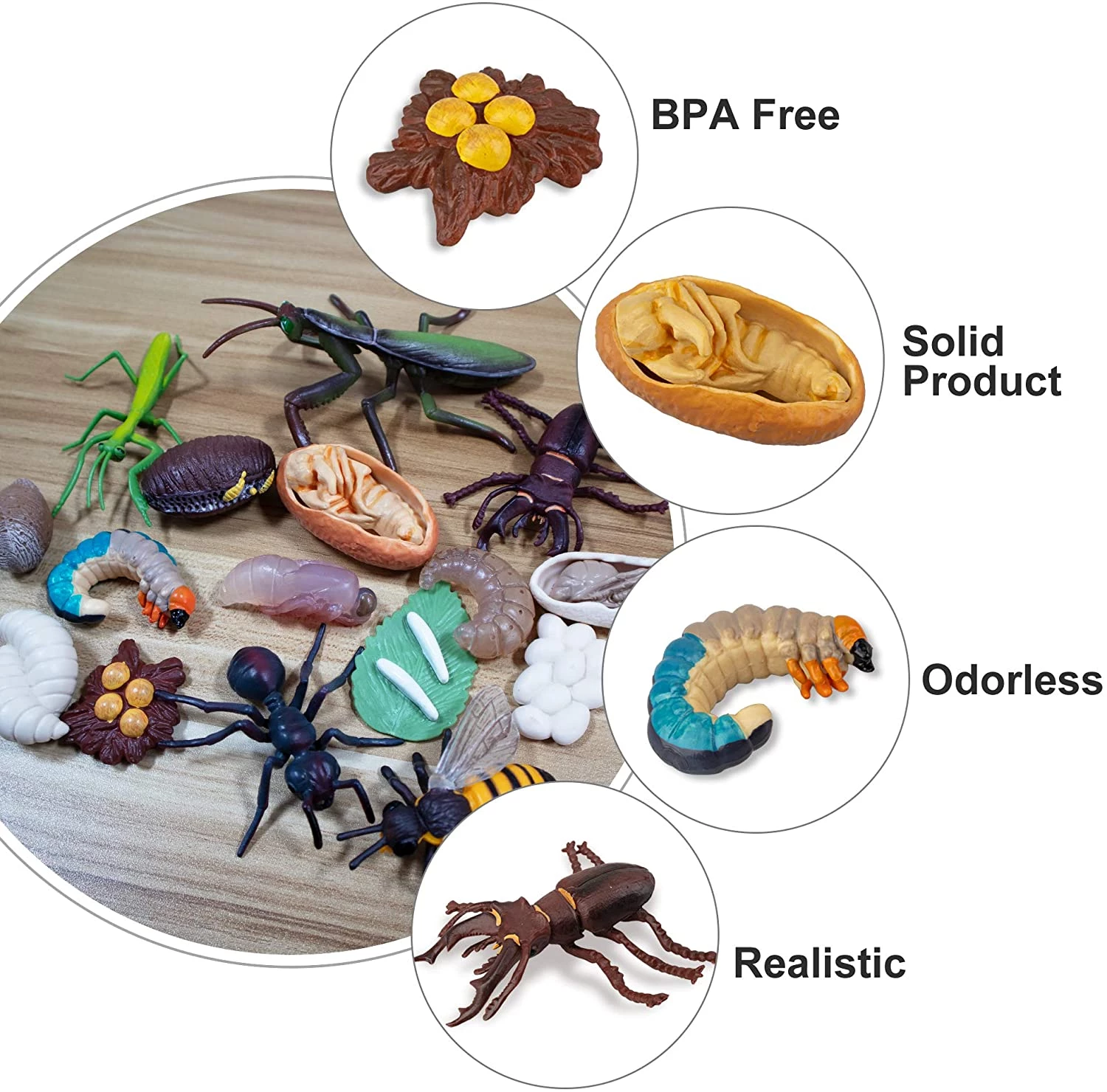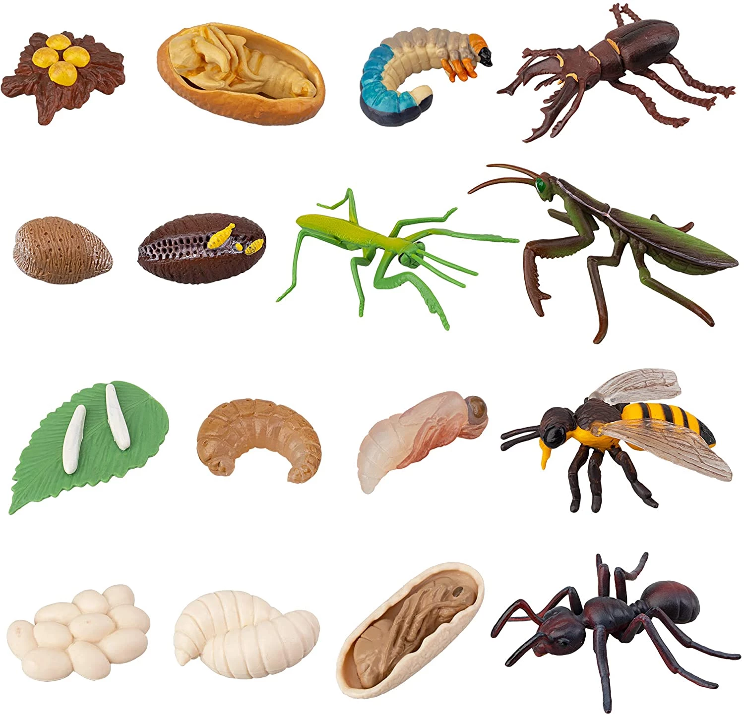 TOYMANY 16PCS Insect Figurines Life Cycle of Stag