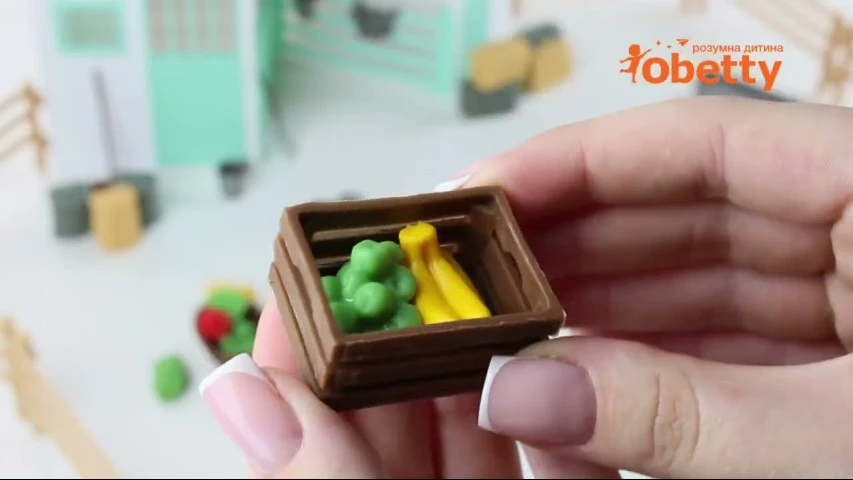 За допомогою цього цікавого ігрового набору маленькі фантазери зможуть вигадати безліч цікавих сюжетів для своїх ігор. Цей ігровий комплект включає фермерський будиночок-сарай, ворота, 20 секцій паркану, всілякий садовий інвентар, а також овочі та фрукти. Всі аксесуари, що входять до представленого ігрового набору, виглядають дуже реалістично, що забезпечить дитині захопливу гру.