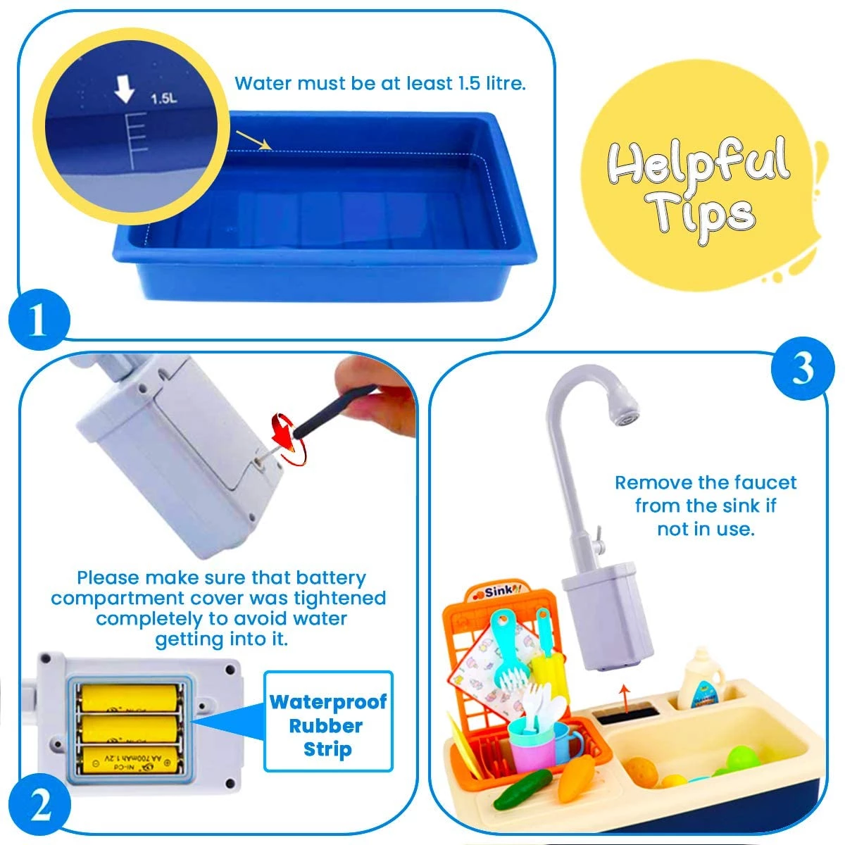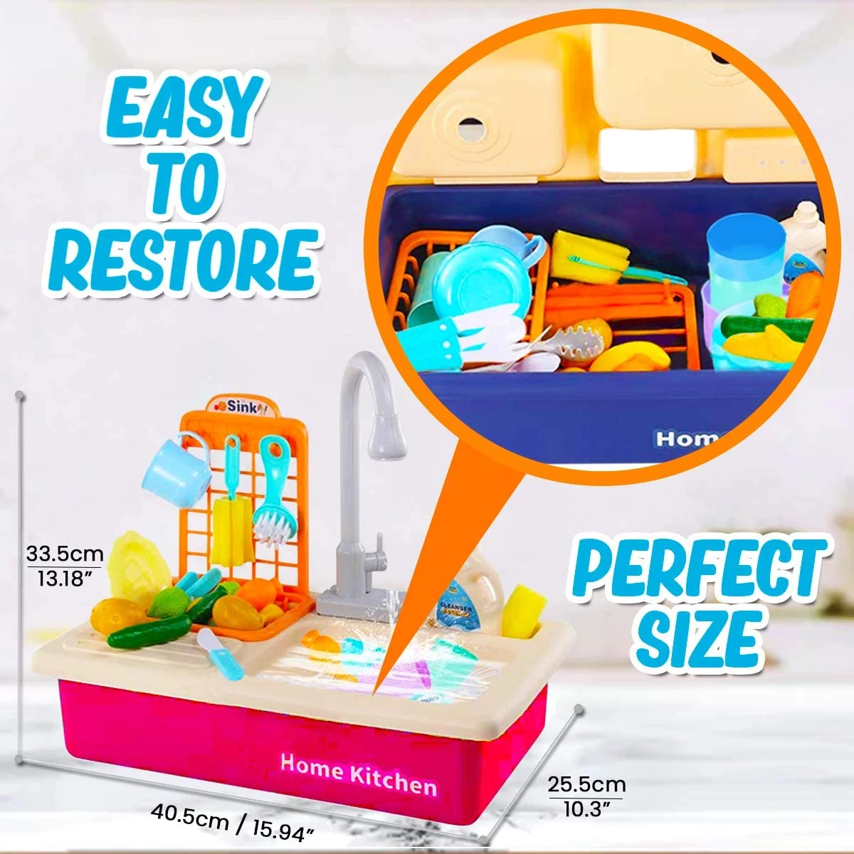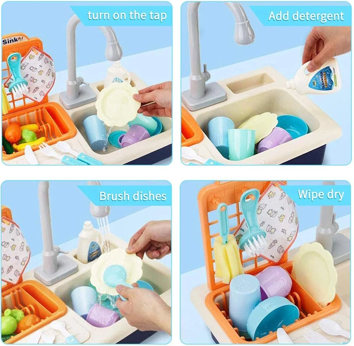 Cheffun Pretend Play Kitchen Sink Toy - Running Water Dishes Washing Toys for Kids Playhouse