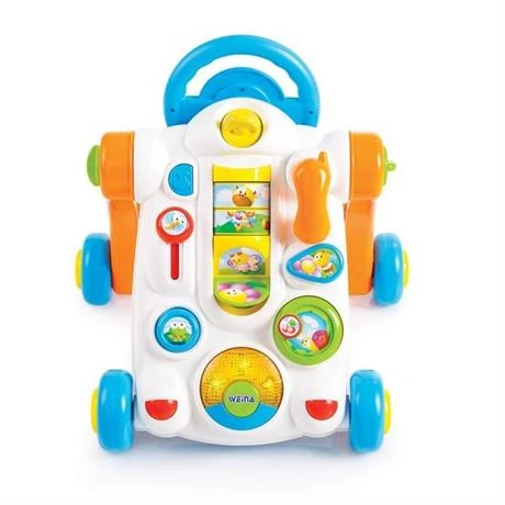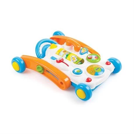 Ходунки на колесах з кермом - для перших кроків малюка. На яскравій ігровій панелі багато цікавого: картинки, які треба перевернути, щоб скласти зображення тварин, кнопки щоб натискати, і важелі, щоб крутити і тягнути. Все це супроводжується веселими звуками і вогниками.